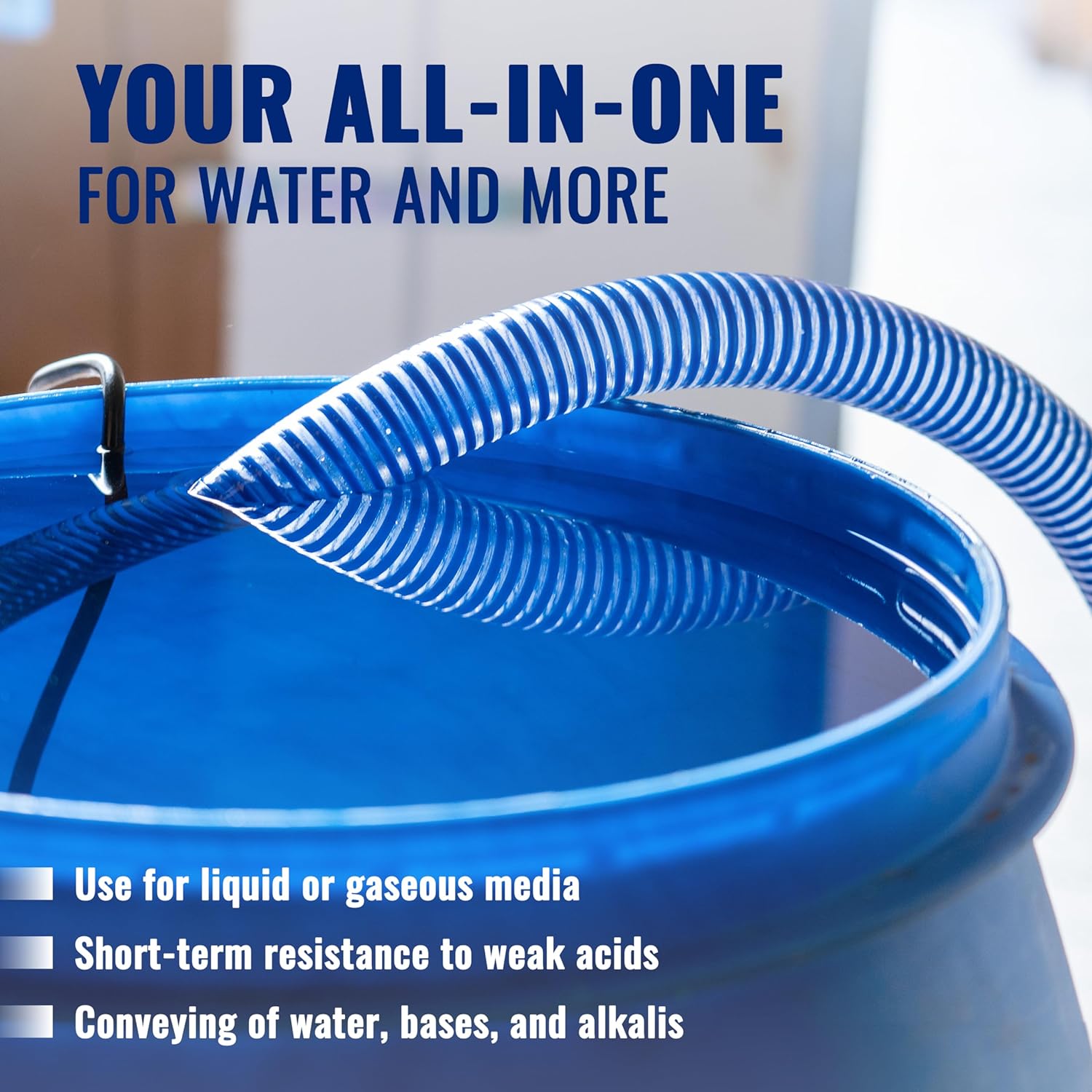 • Spiralschlauch zum Durchleiten, Bewässern, Absaugen von Gas, Wasser, Basen & Laugen - als Ansaugschlauch für Gartenpumpe, Poolschlauch