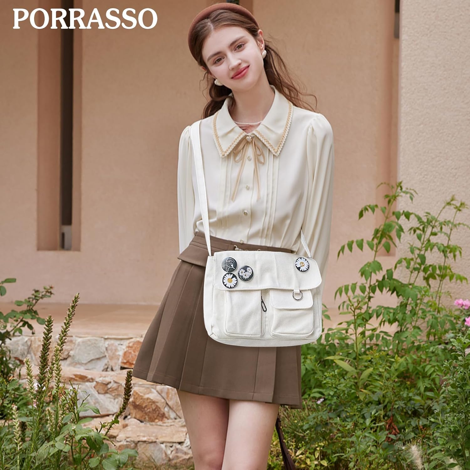 PORRASSO Casual Umhängetasche Damen Canvas Schultertasche Mädchen Messenger-Tasche für Arbeit Schule