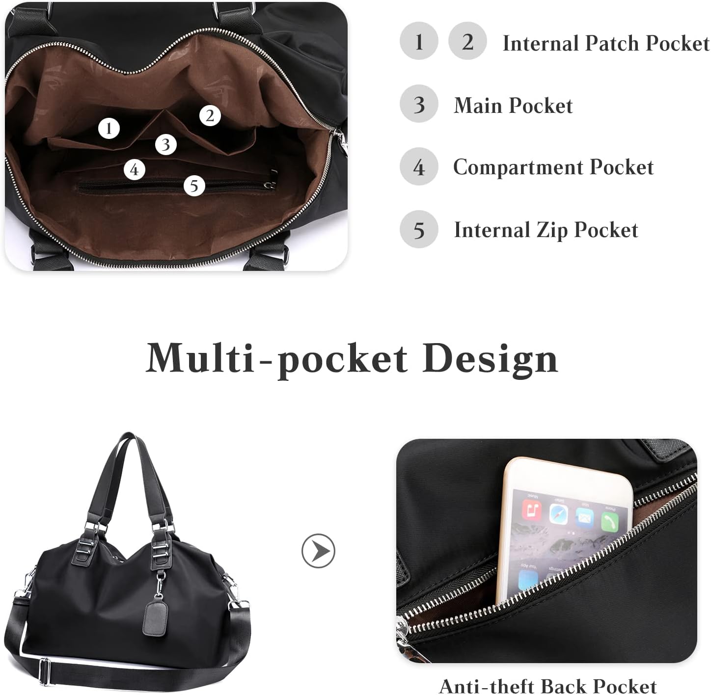 • ✿Grosse Kapazität: Grösse: 43 x 17 x 29 cm (Länge x Breite x Höhe). Gewicht: 0,82 kg. Diese Umhängetasche hat ein grosses Hauptfach und mehrere Funktionszonentaschen. Sie können problemlos Kleidung, Tablet, Powerbank und mehr für kurze Reisen