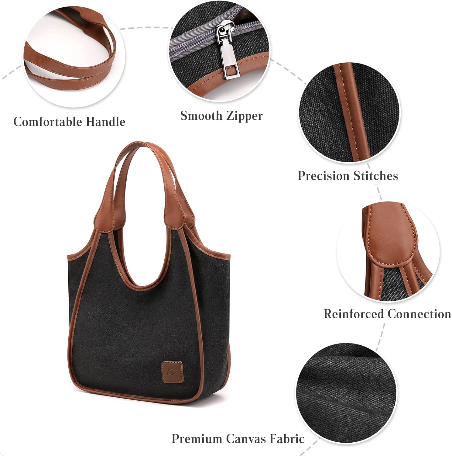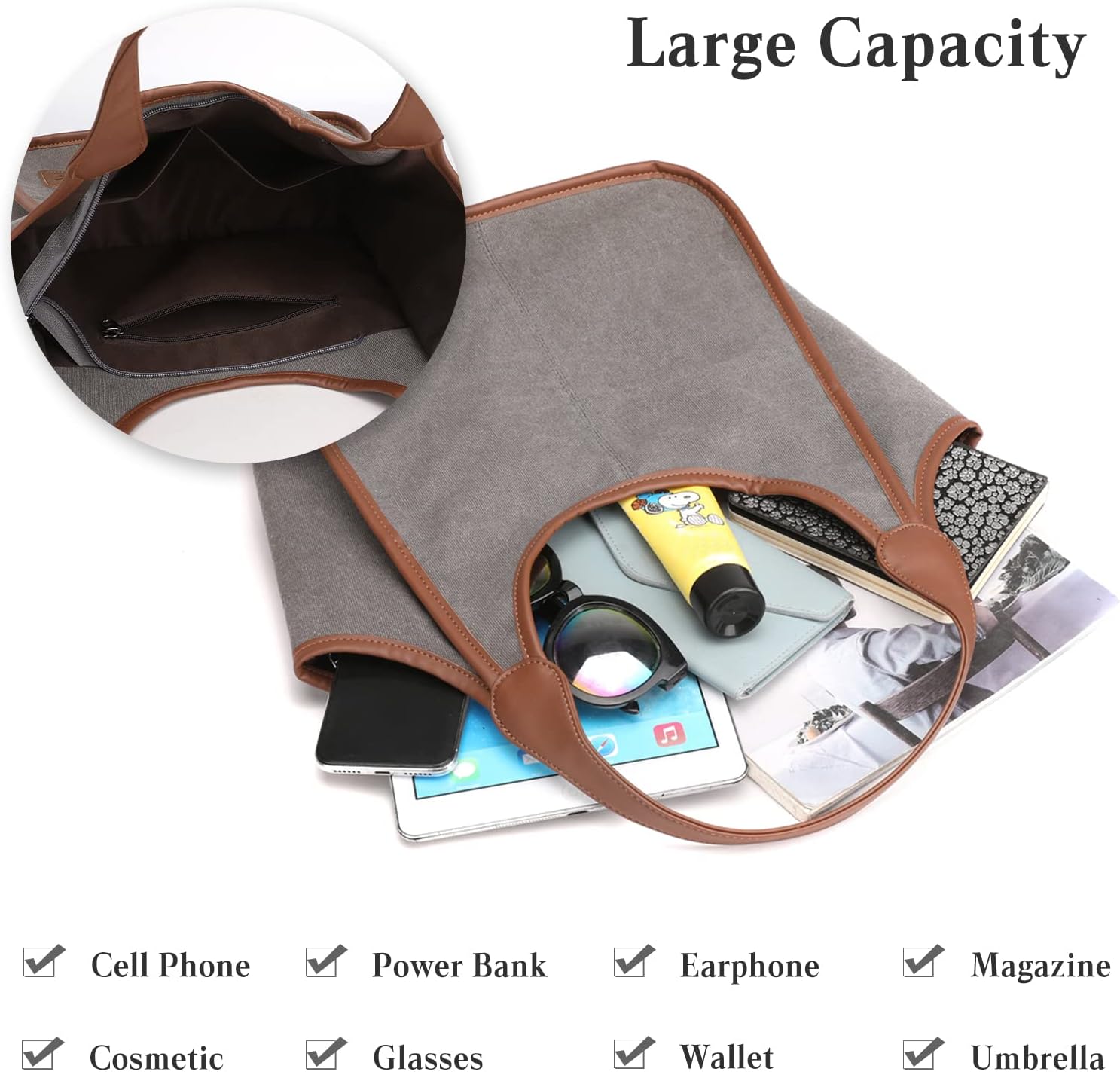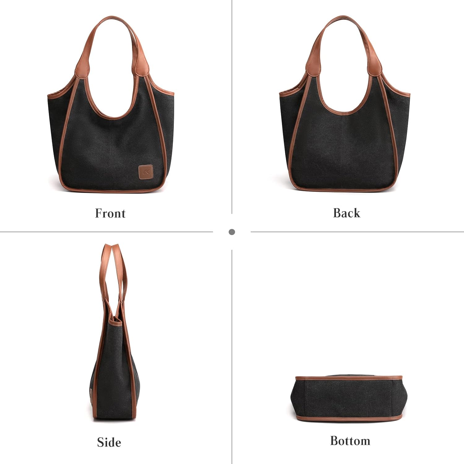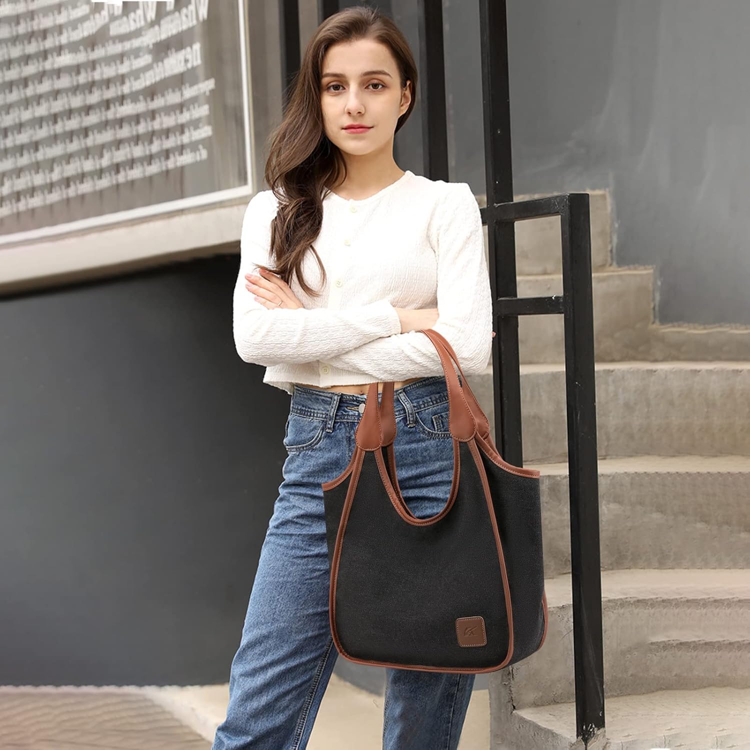 PORRASSO Damen Handtasche Canvas Hobo Schultertasche Fraue Shopper Henkeltasche für Einkaufen Schule