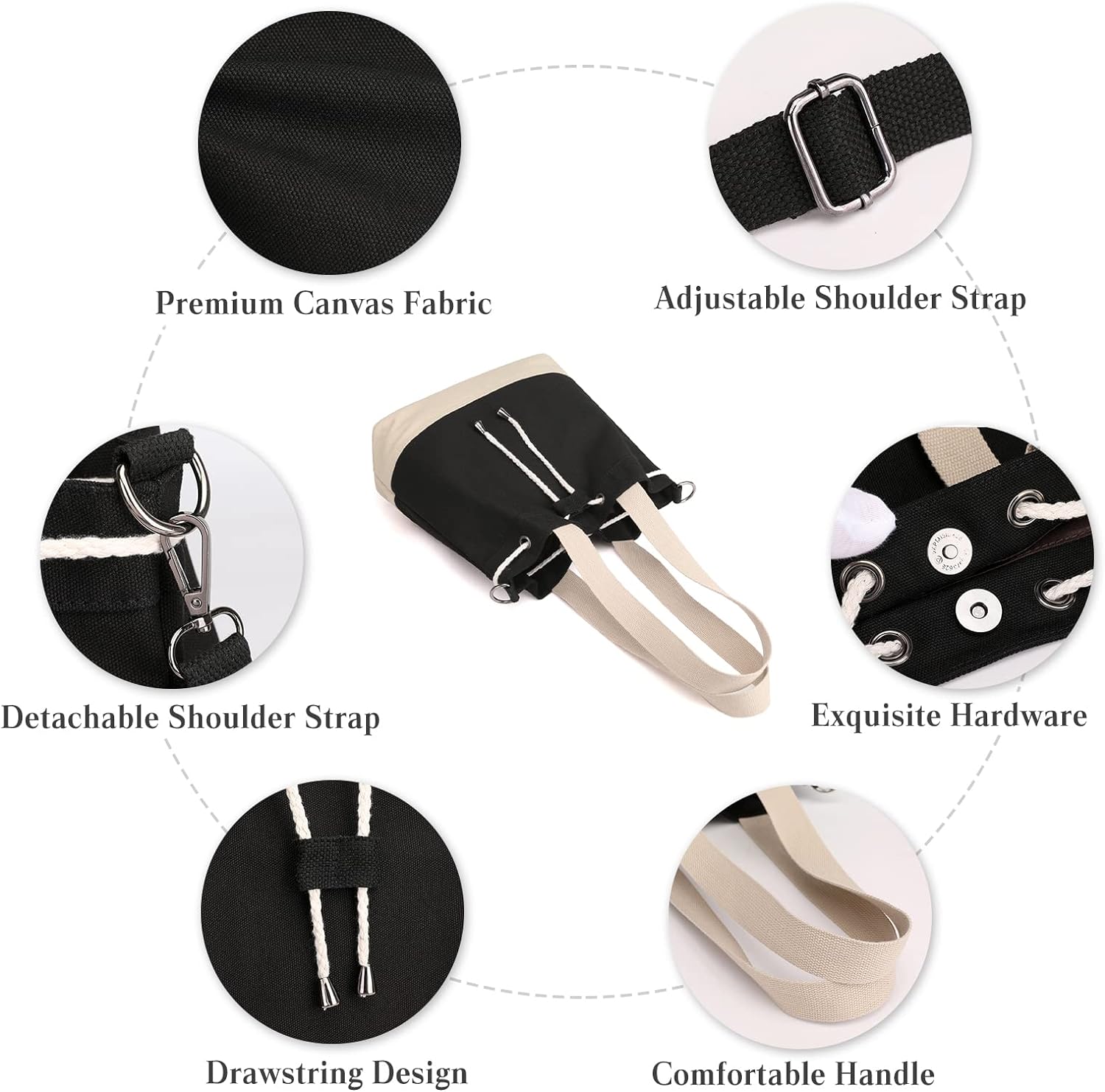 PORRASSO Damen Schultertasche Canvas Tote Umhängentasche Kordelzug Beuteltasche Mädchen Handtasche C