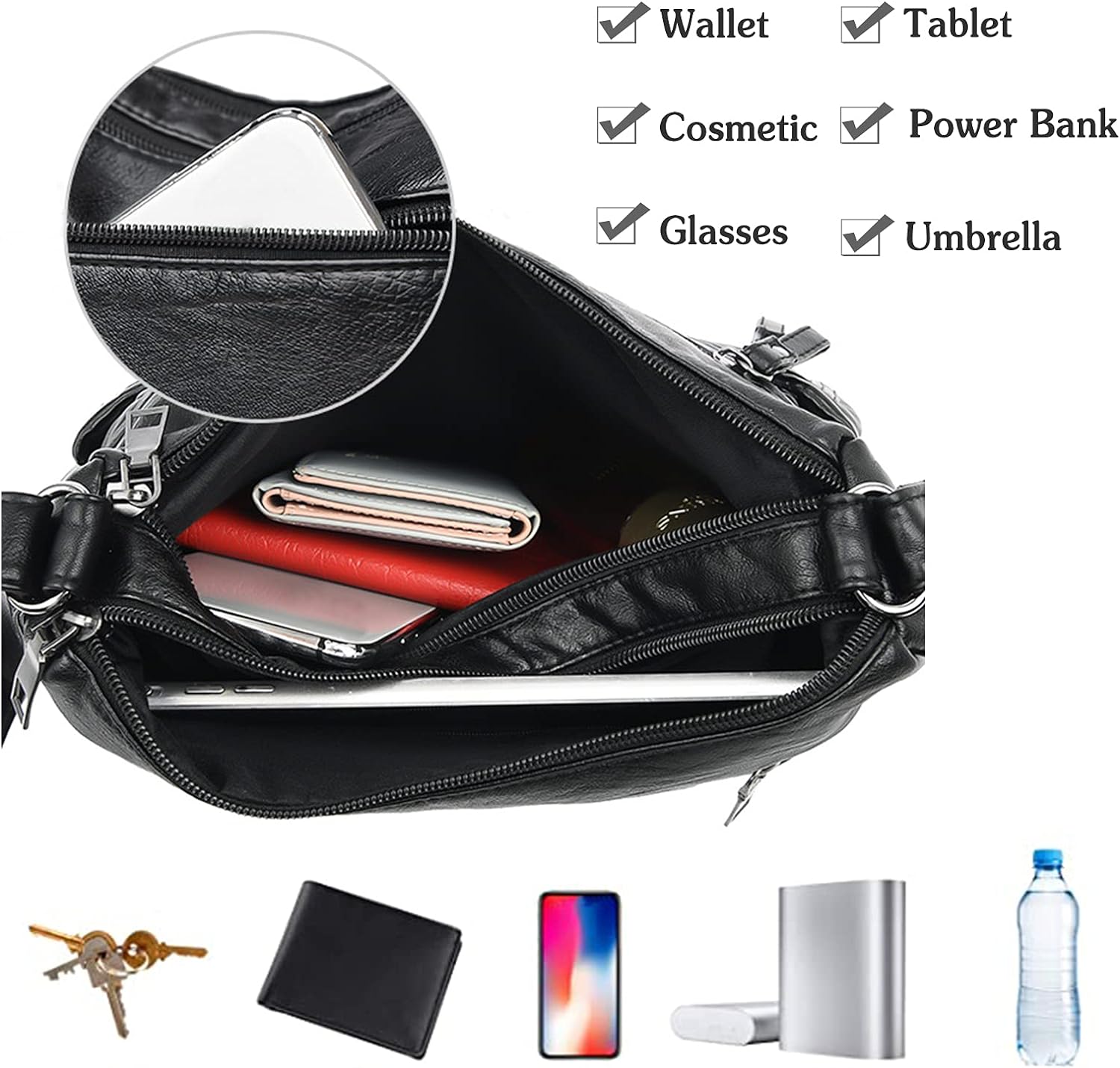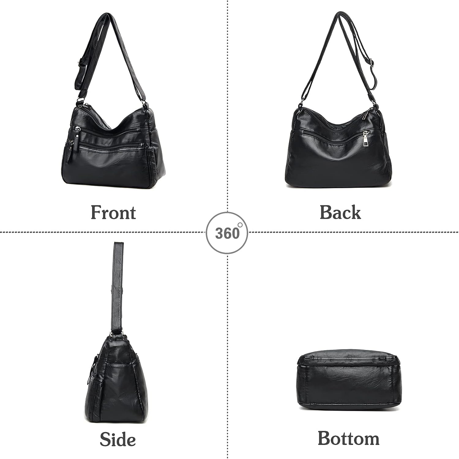 PORRASSO Damen Umhängetasche Multi-Tasche Schultertasche Leder Wasserdicht Handtasche Schulterbeutel