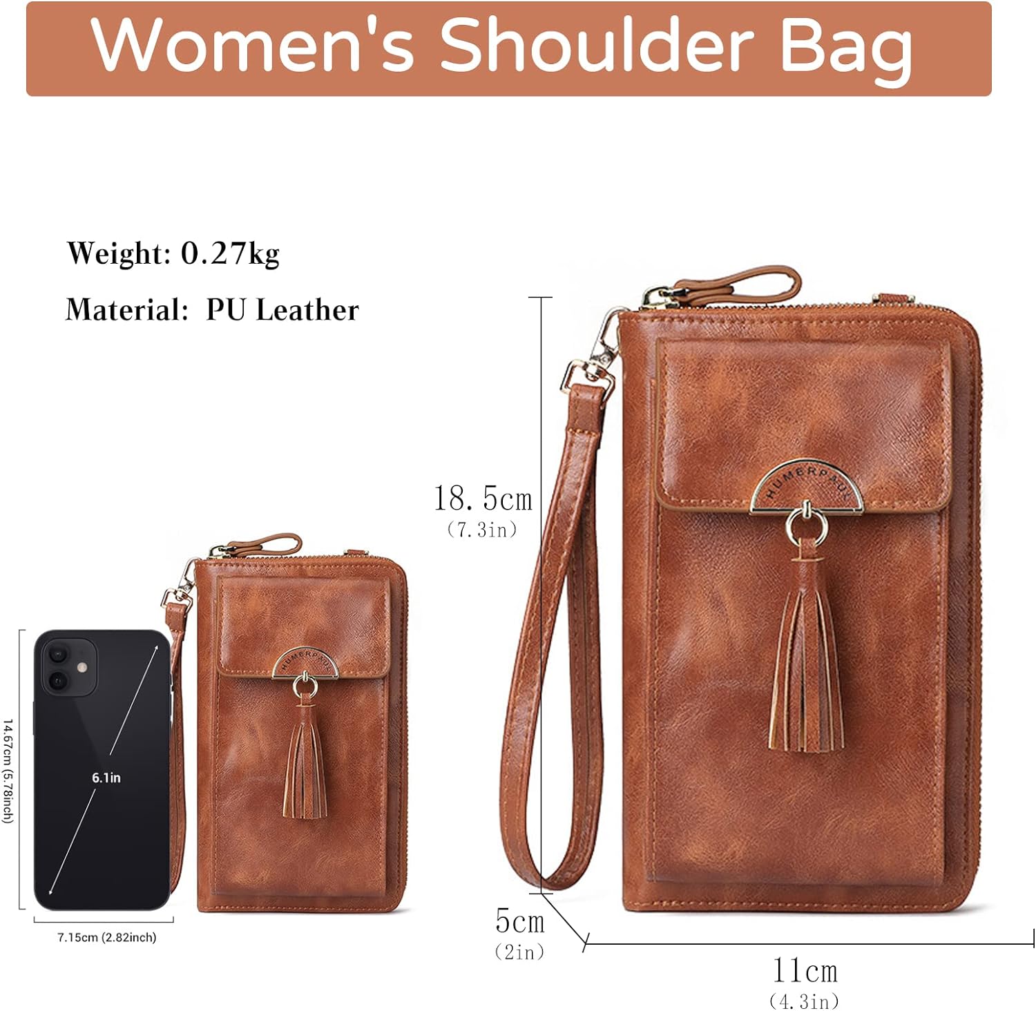 PORRASSO Geldbörse Damen Umhängetasche Portemonnaie Leder Geldbeutel Wristlet Bag mit Viele Fächer M
