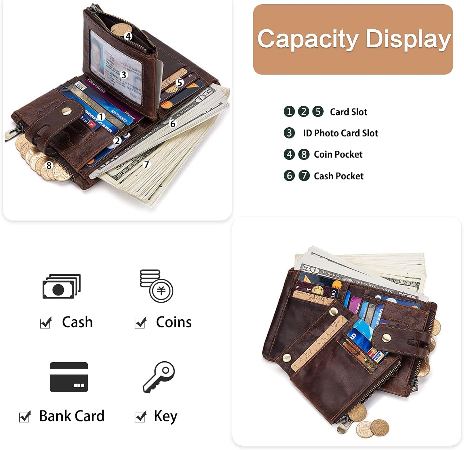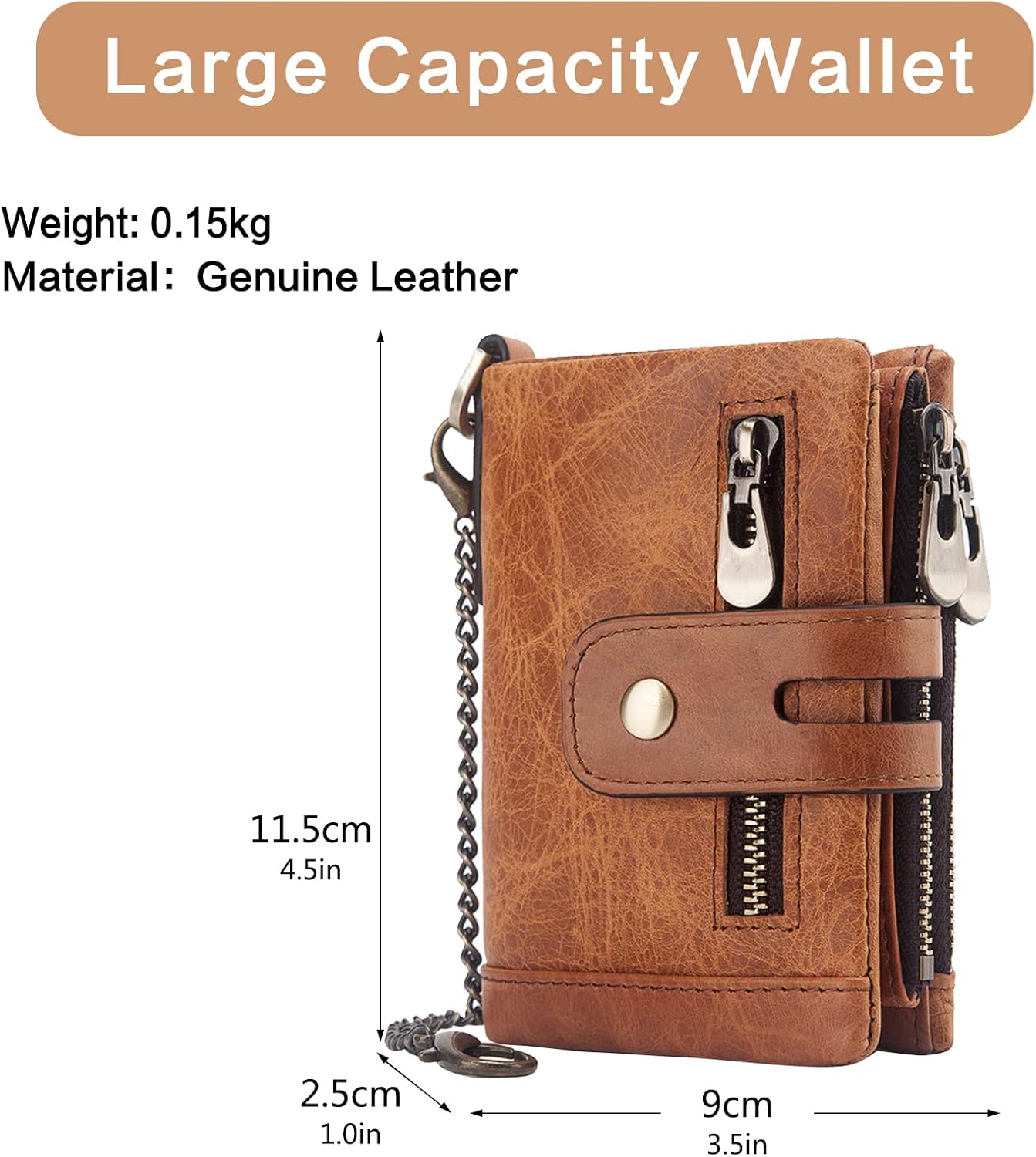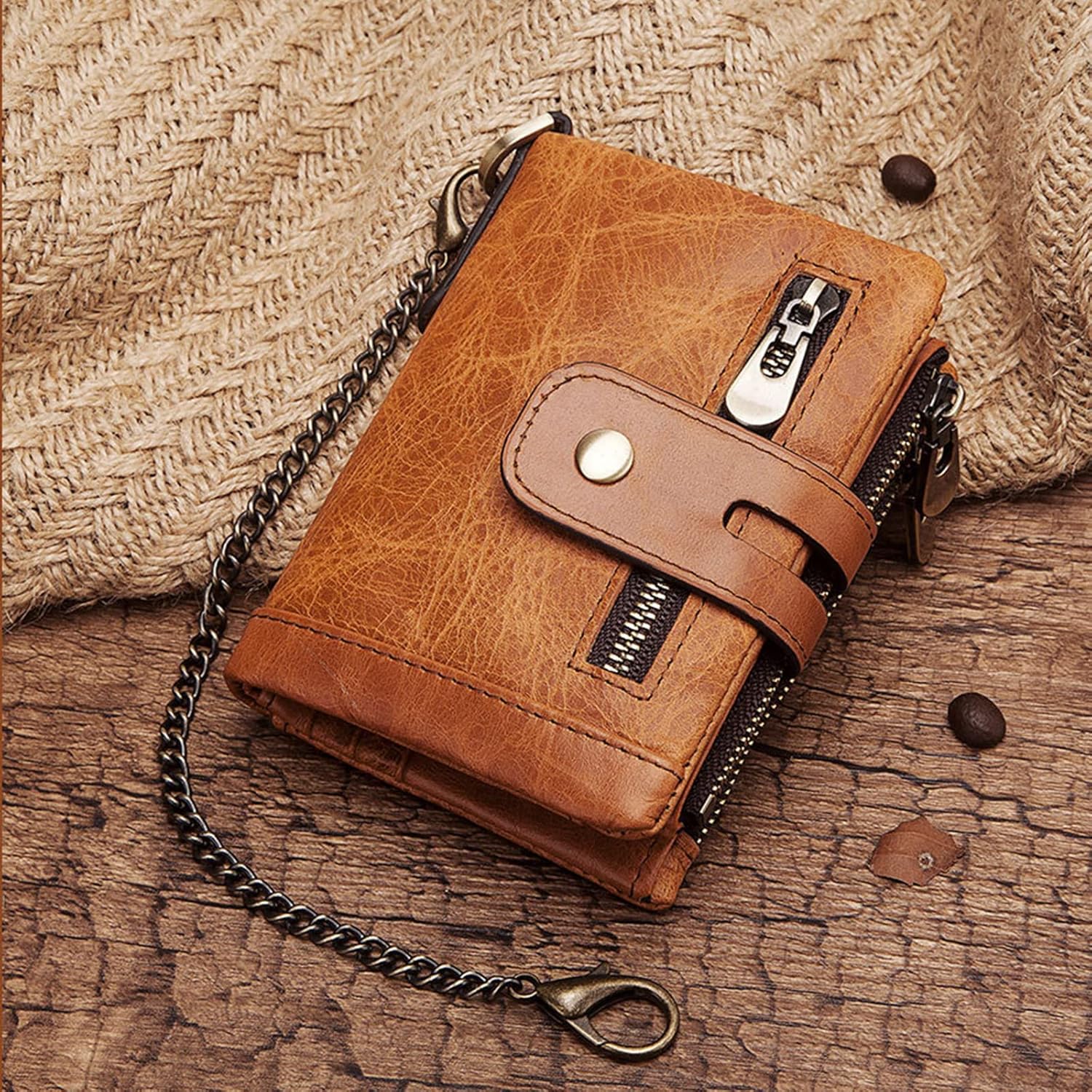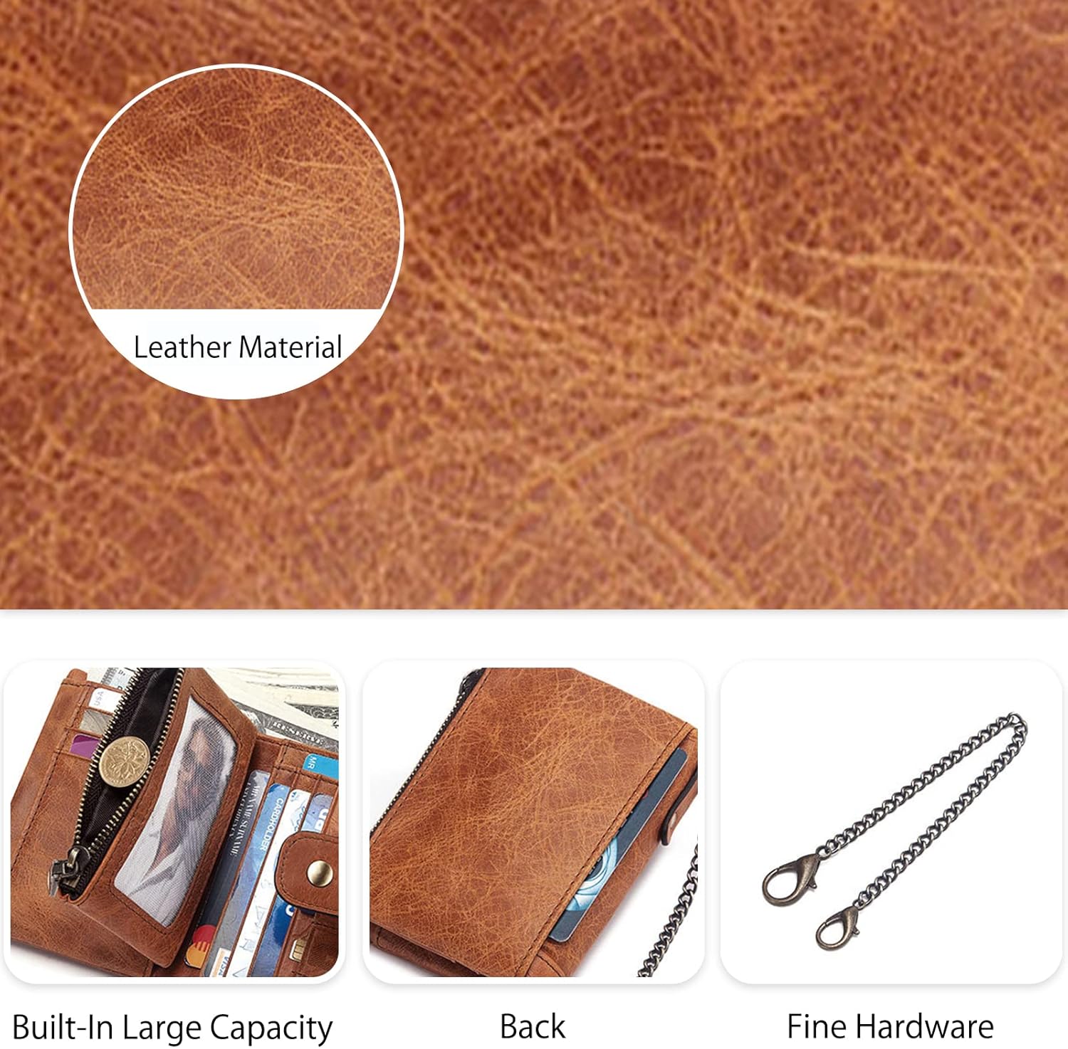 - ☞Premium Material: Aus hochwertigem Echtleder gefertigt, ist dieses Portemonnaie weich und bequem. Eine abnehmbare Metallkette mit Haken macht das Portemonnaie sicherer und unwahrscheinlicher, dass es verloren geht.
