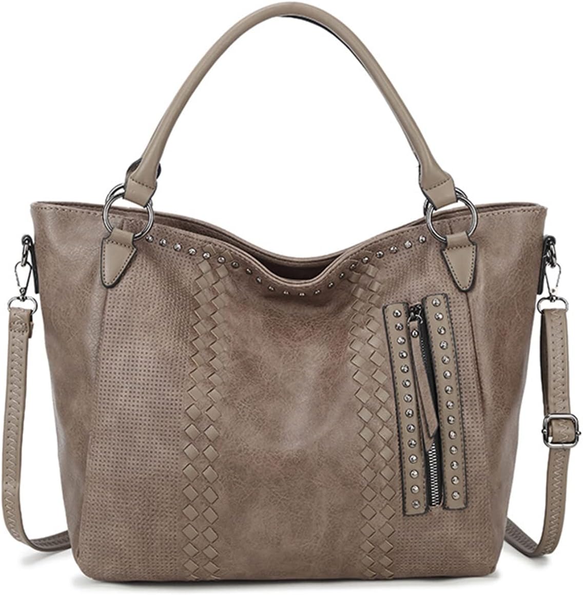 PORRASSO Mode Handtasche Damen Schultertasche Grosse Henkeltasche Frauen PU Leder Umhängetasche Reis