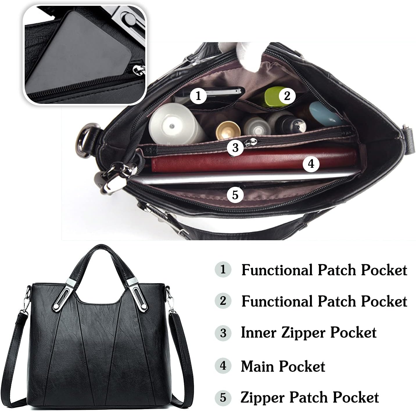 • đŸŒčHochwertige Verarbeitung - Die Schultertasche ist aus hochwertigem, umweltfreundlichem PU-Leder gefertigt, fĂŒhlt sich zart und angenehm an, hat eine klare Textur, ist wasserdicht und reissfest. Der Reissverschluss ist glatt und nicht verklebt, und