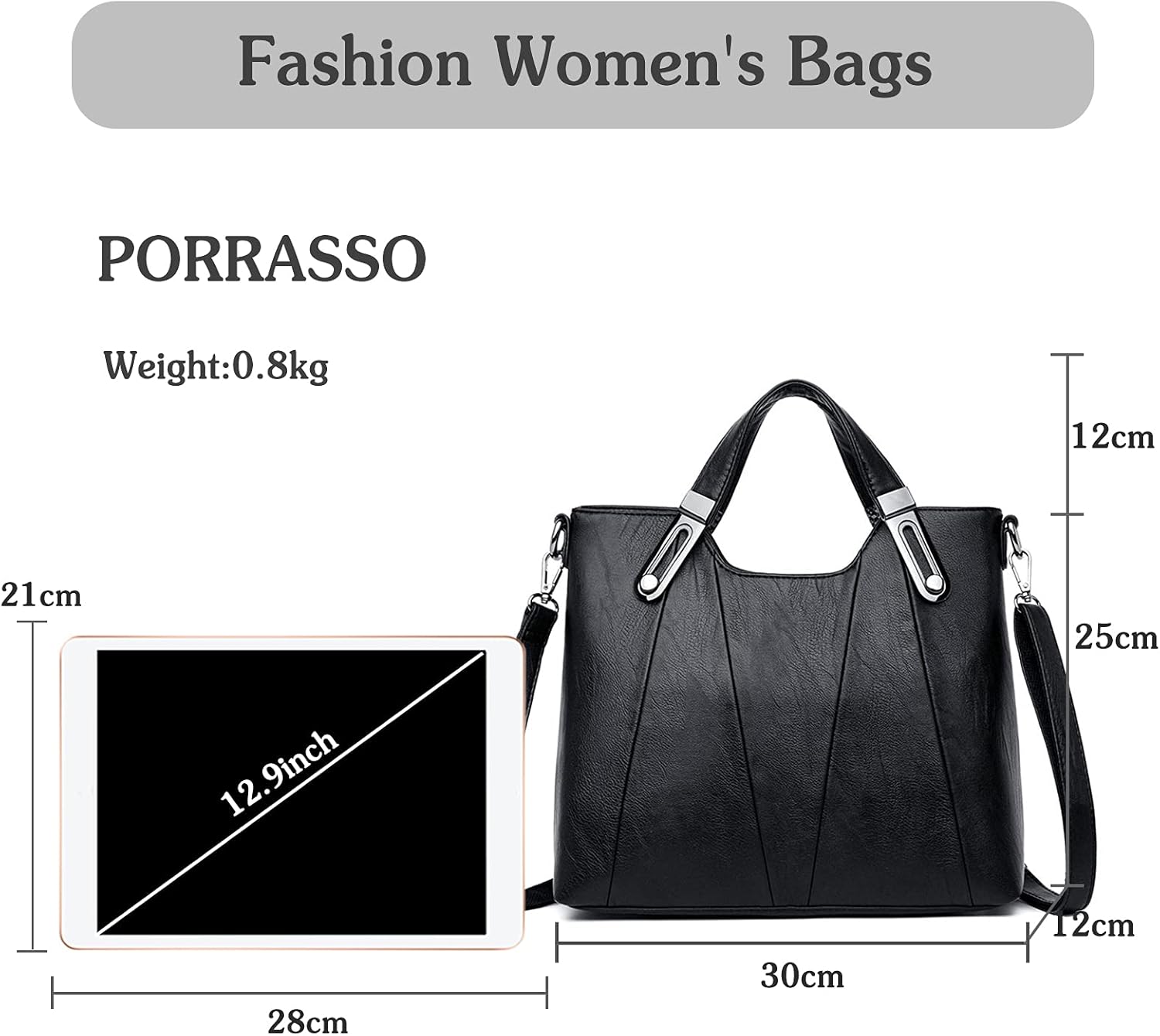 • đŸŒčAbmessungen & Struktur - Grösse: 30x12x25 cm (LĂ€nge x Breite x Höhe). Gewicht: 0,8 kg. Diese elegante Tasche beinhaltet 2 HauptfĂ€cher, 2 aufgesetzte Innentaschen, 1 x Mezzanine-Tasche, 1 x Innentasche mit Reissverschluss, 1 GesĂ€sstasche.