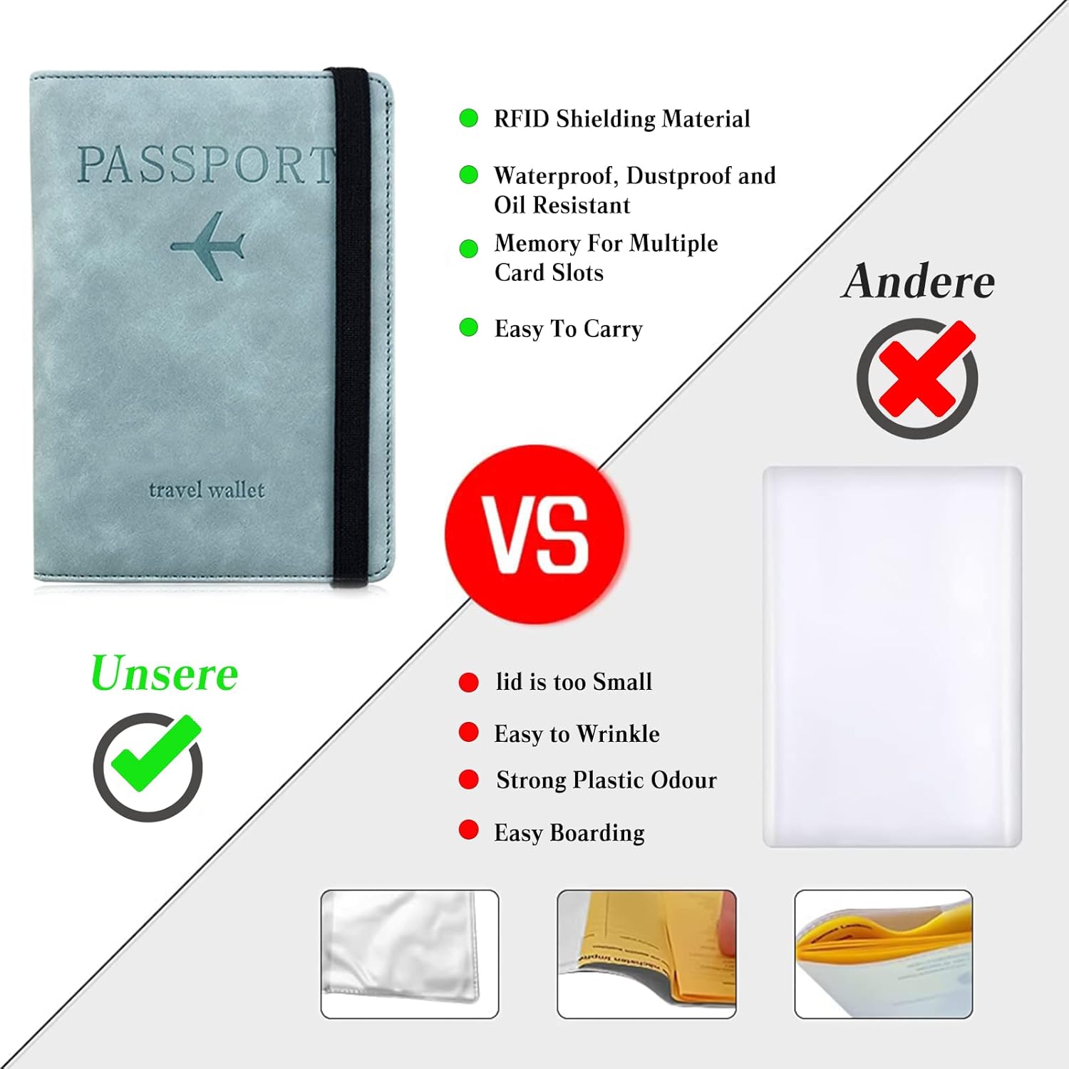 • ✅Ideale Geschenke - Reisepasshalter mit einzigartigem Design, einfach, aber modisch, es passt zu Ihrer Vitalität und Individualität. Ein tolles Geschenk für Männer und Frauen. Geeignet für Familienreisen, Geschäftsreisen, etc. Wenn Sie aus