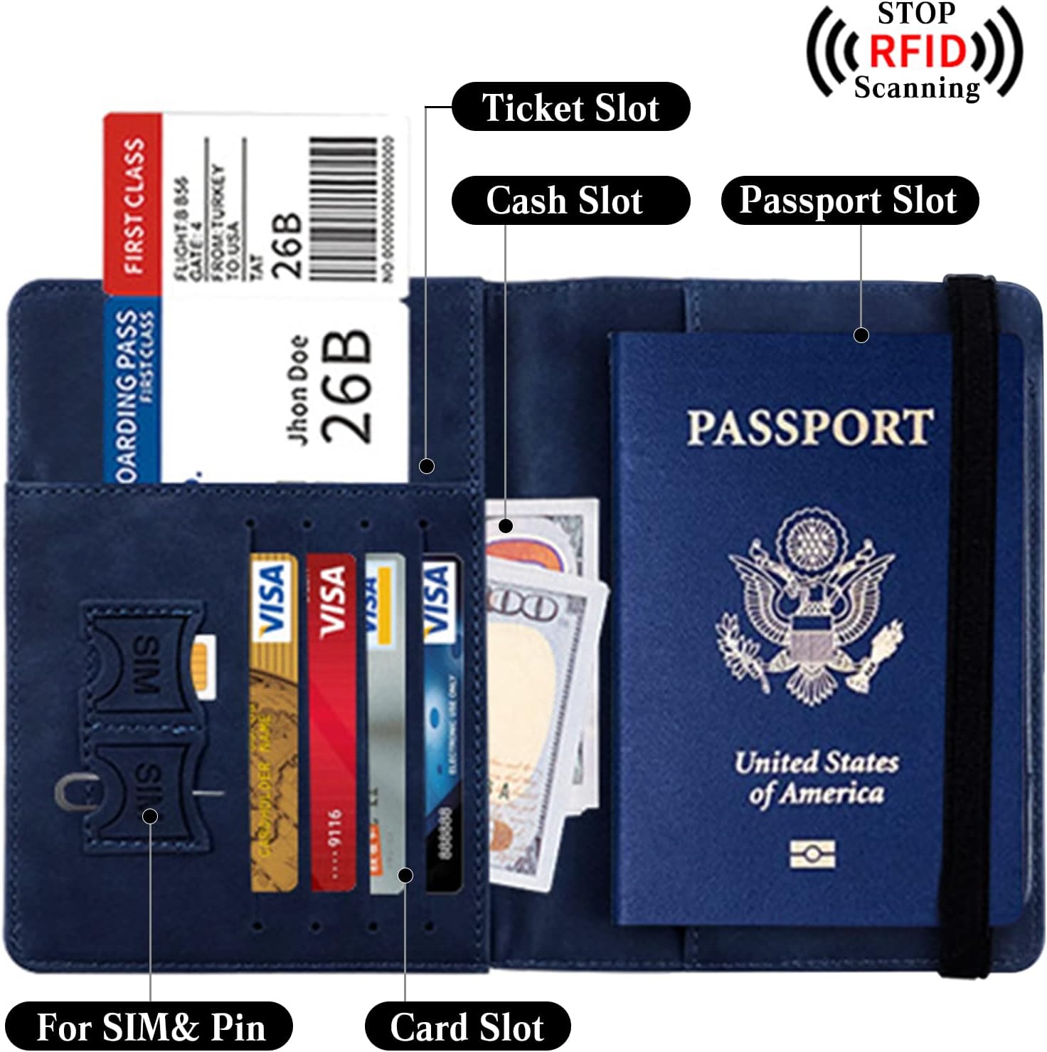 • ✅Gut Organisierte Reisedokumentenhalter - Reisepass-Brieftasche mit speziellen Fächern für Reisepass, Kreditkarten, ID-Karten, Bargeld, SIM-Karte und Tickets. So haben Sie beim Einsteigen und im Transit bequemen Zugriff auf die benötigten