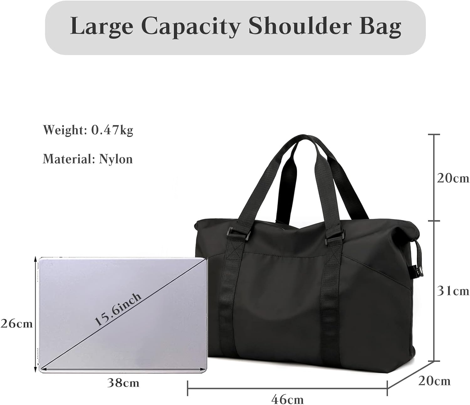 - ★ Grosse Reisetasche: Grösse: 46 x 20 x 31 cm (L x B x H). Gewicht: 0,47 kg. Diese Duffle hat eine grosse Haupttasche und mehrere Funktionszonentaschen. Sie können problemlos Kleidung, Kosmetika, Toilettenartikel und mehr für kurze Reisen