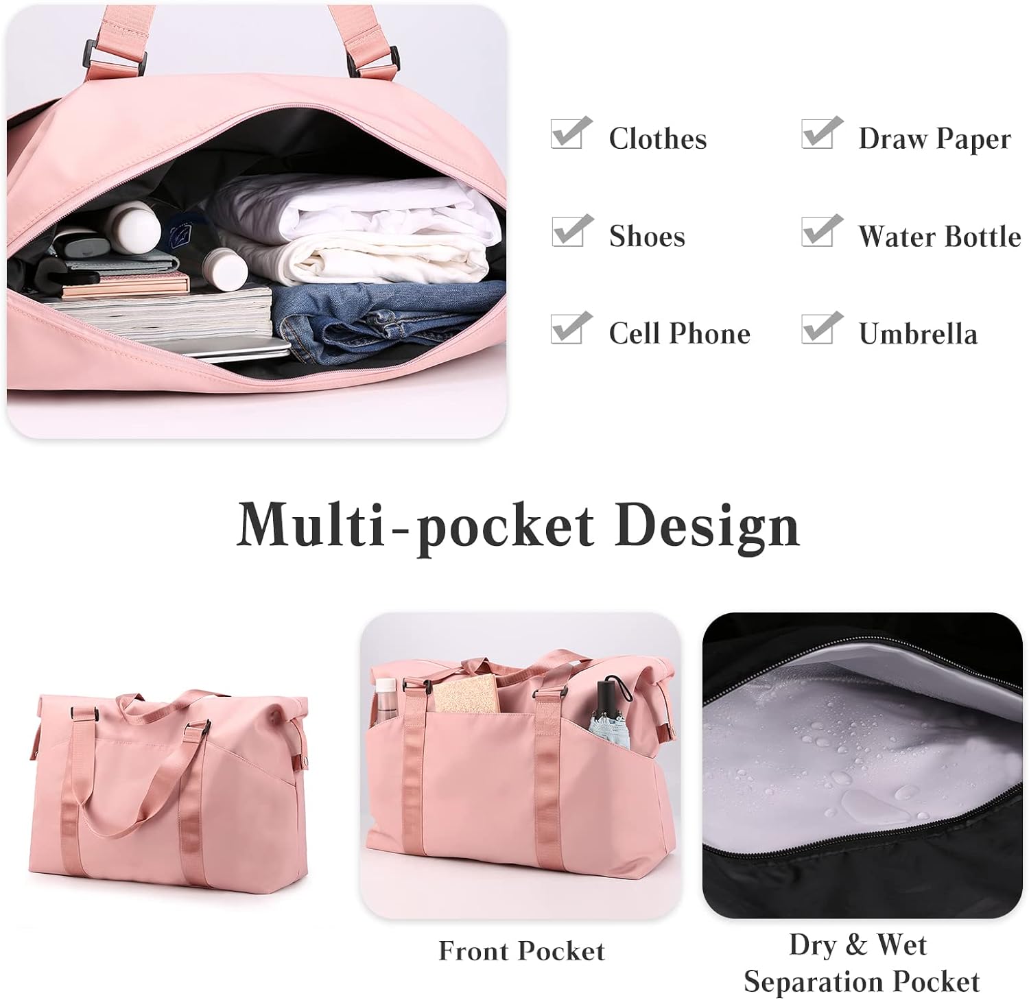- ★ Dry Wet Separated Tote Bag: Das wasserabweisende Material mit hoher Dichte kann Ihnen helfen, trockene und nasse Gegenstände zu trennen. Sie können nasse Kleidung, Handtücher oder Toilettenartikel auf Reisen oder beim Sport in das Fach legen.