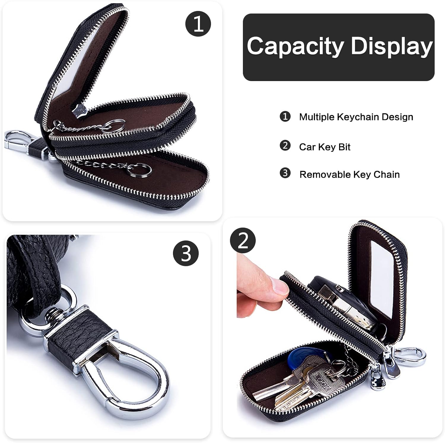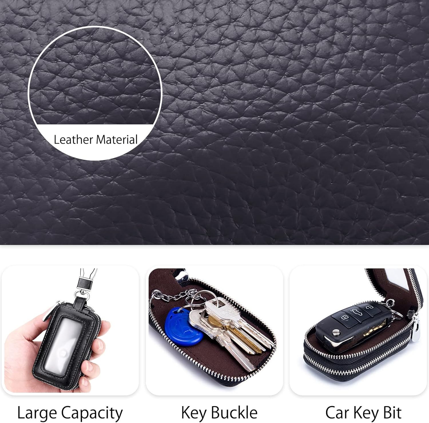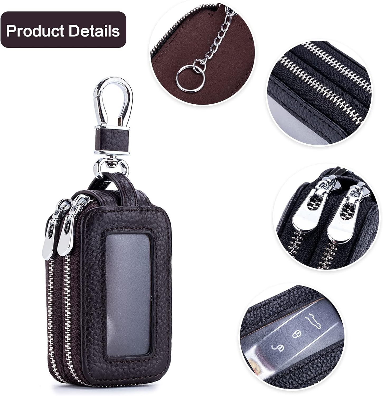 - ☞Grosse Kapazität der Schlüsseltasche: Doppellagiger Reissverschluss, zwei separate Taschen, einfacher Zugang zu den Schlüsseln. Autoschlüssel-Bart ist mit einem transparenten Fenster entworfen, so gibt es keine Notwendigkeit, den Reissverschluss