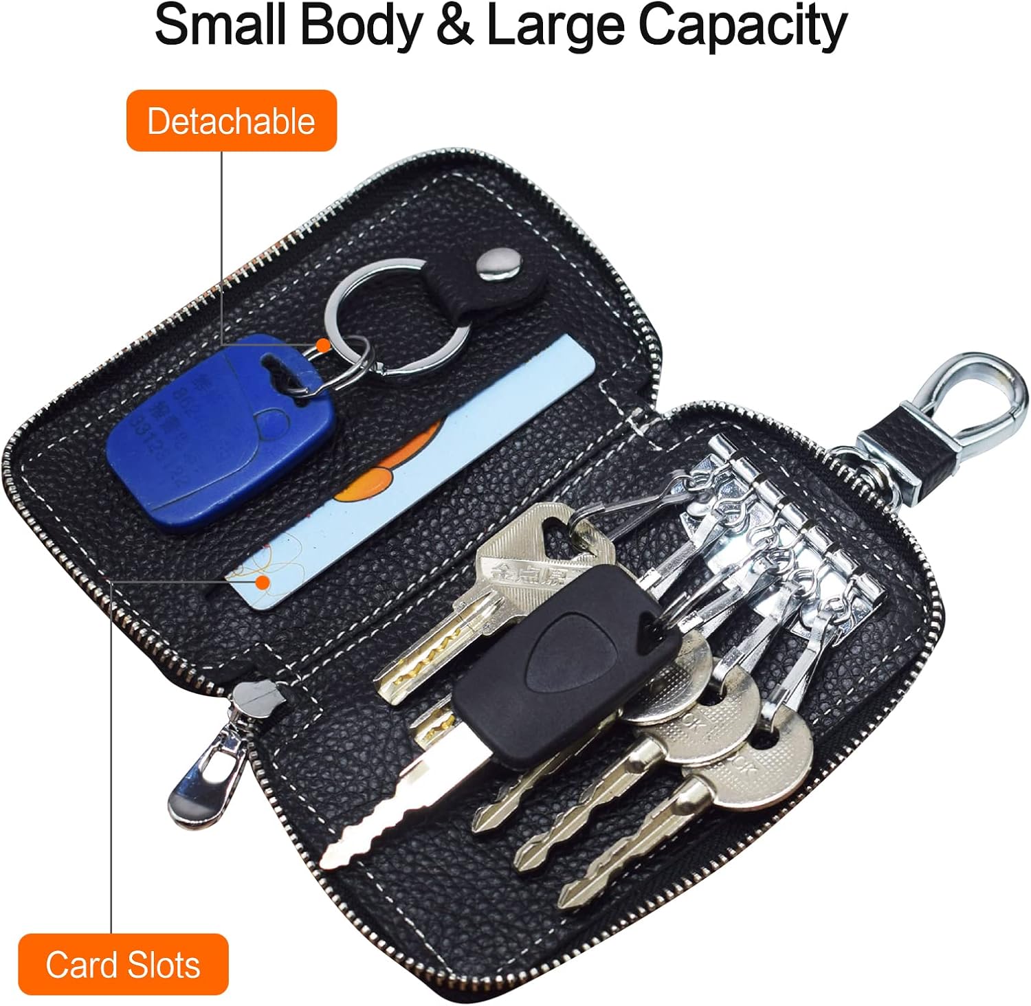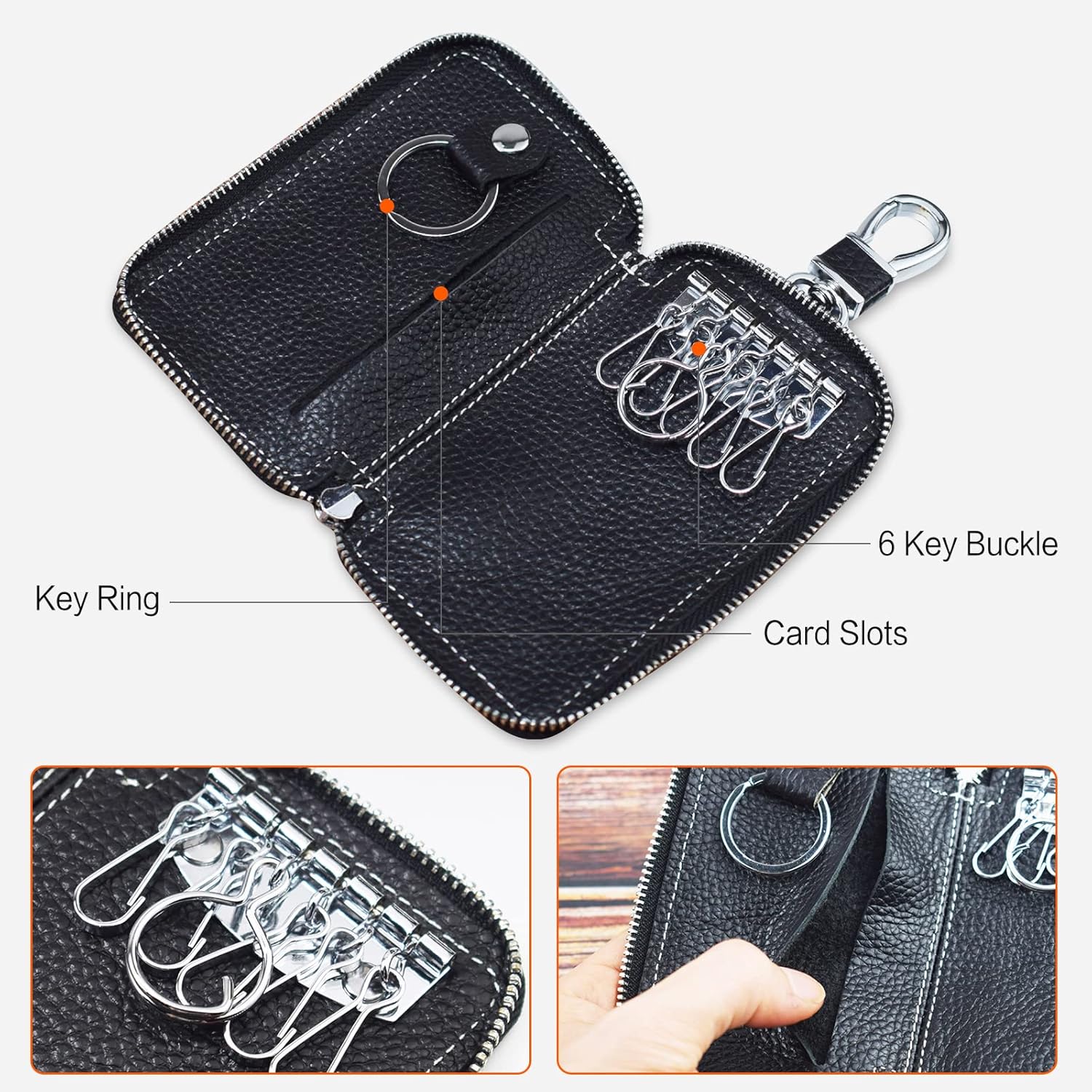 - ☞Schlüsseltasche mit Grösserer Kapazität: Jedes Schlüsseletui wird mit 6 Schlüsselhaken und 1 abnehmbaren Schlüsselring für die Zugangskontrolle geliefert. Es gibt auch 1 speziellen Platz für Kreditkarten in der Schlüsseltasche.