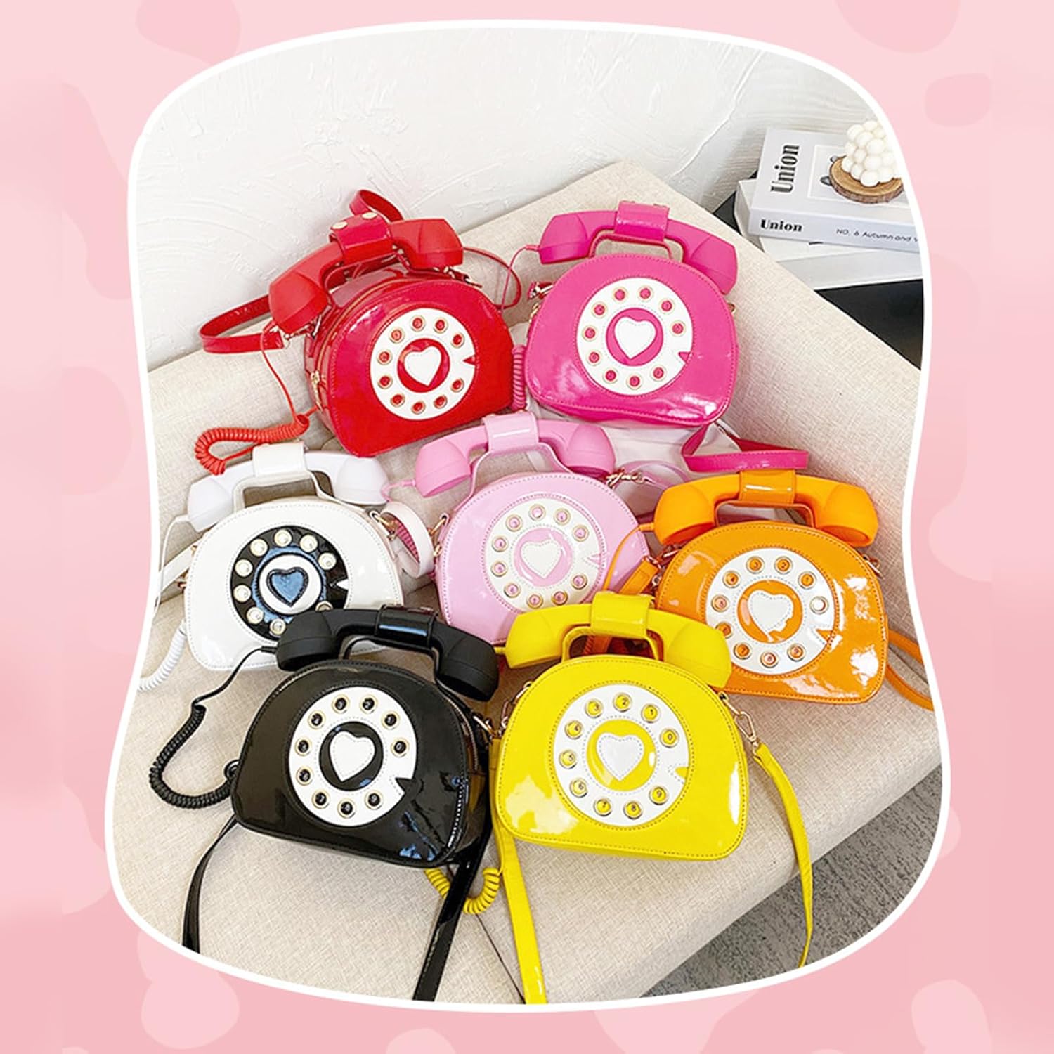 - ★Süsse Umhängetasche: Spezielle Telefonform und Lackleder in glänzenden Farben. Der Telefonhörer kann an Ihr Mobiltelefon angeschlossen werden, um Musik abzuspielen. (Für Mobiltelefone mit 3,5-mm-Buchse. Wenn Sie ein Telefon mit einer anderen