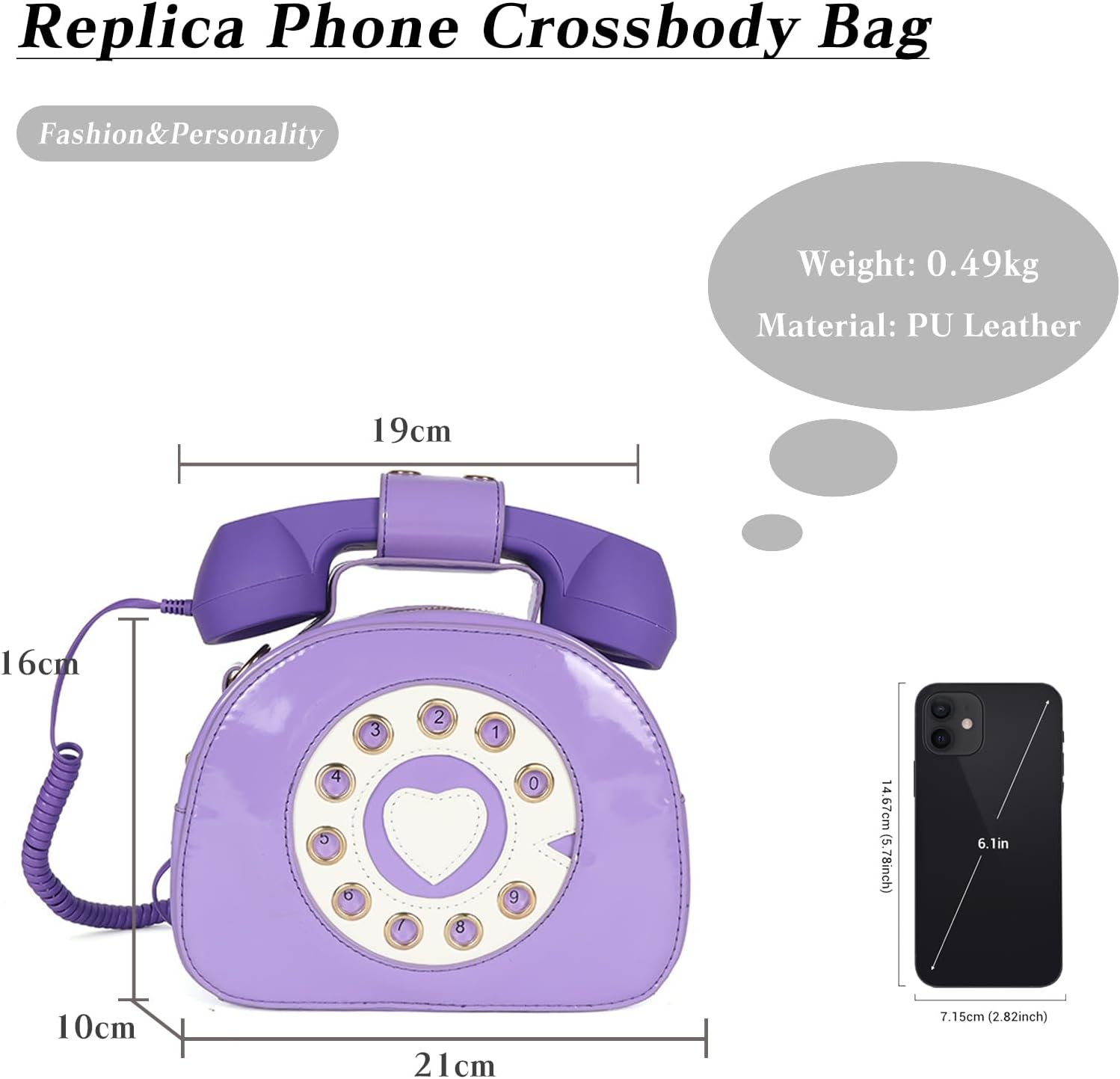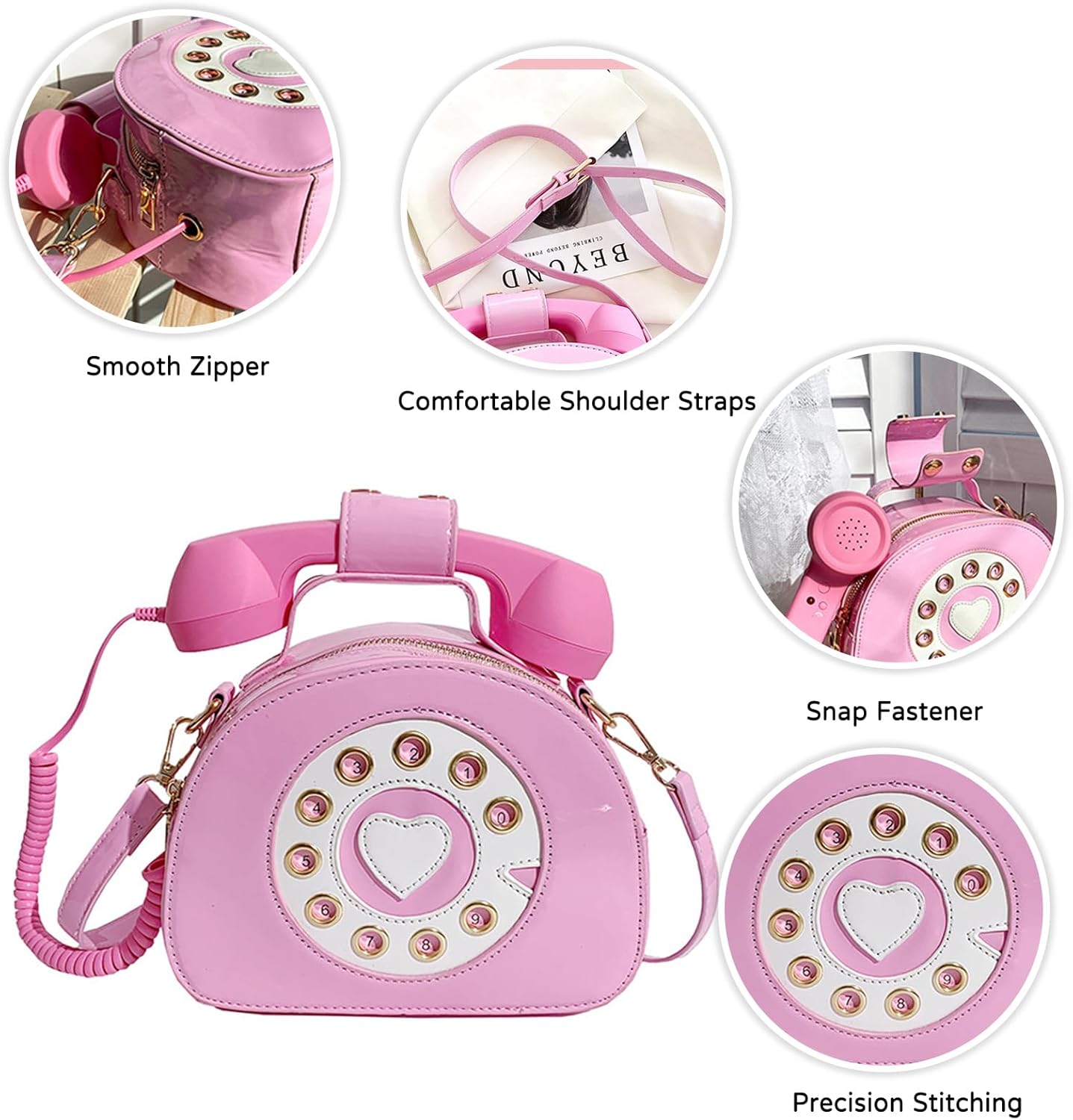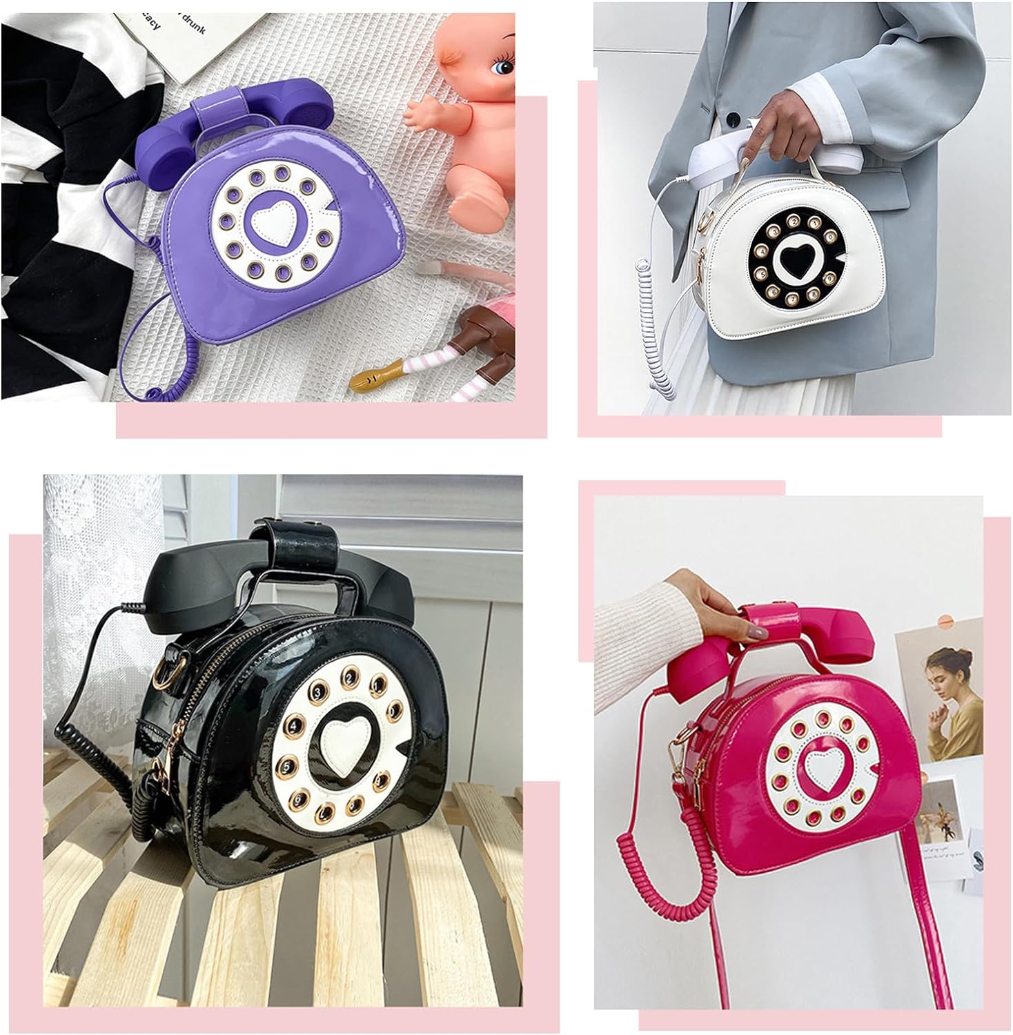 - ★Süsse Umhängetasche: Spezielle Telefonform und Lackleder in glänzenden Farben. Der Telefonhörer kann an Ihr Mobiltelefon angeschlossen werden, um Musik abzuspielen. (Für Mobiltelefone mit 3,5-mm-Buchse. Wenn Sie ein Telefon mit einer anderen