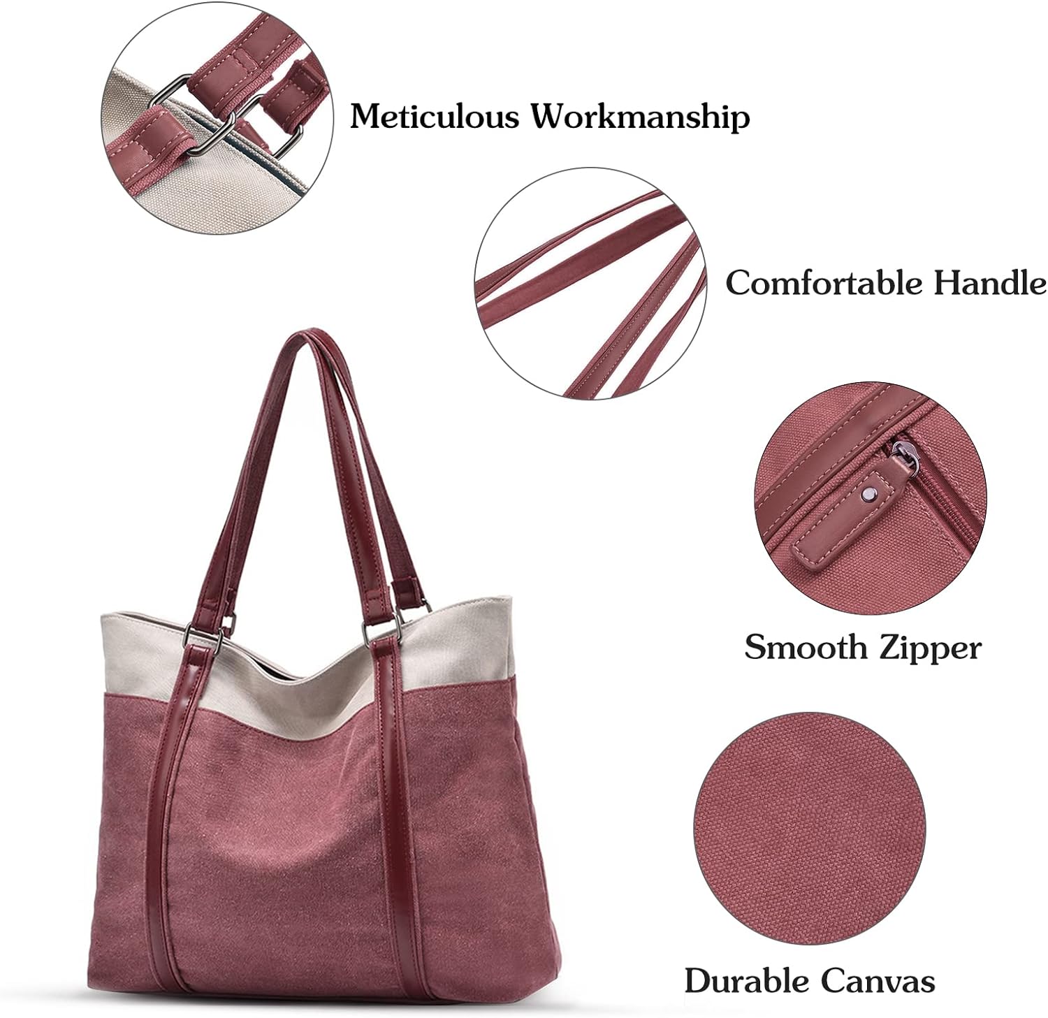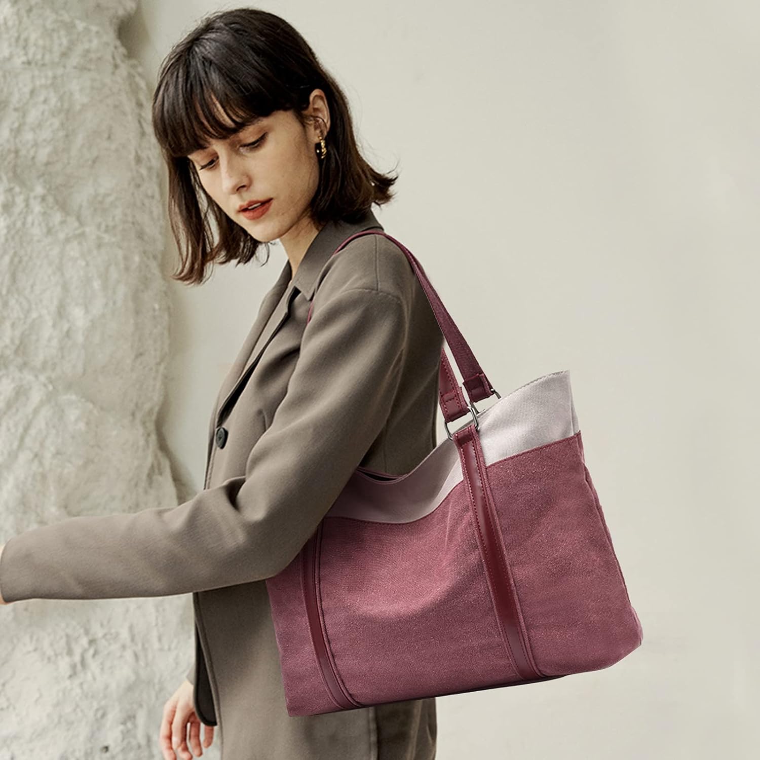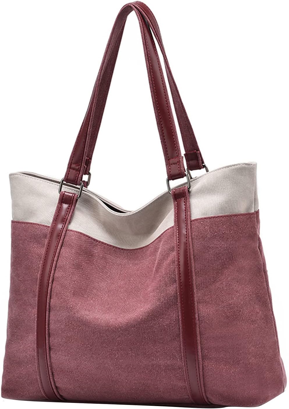 PORRASSO Damen Handtasche Gross Schultertasche Casual Shopper Leinwand Strandtasche für Büro Schule
