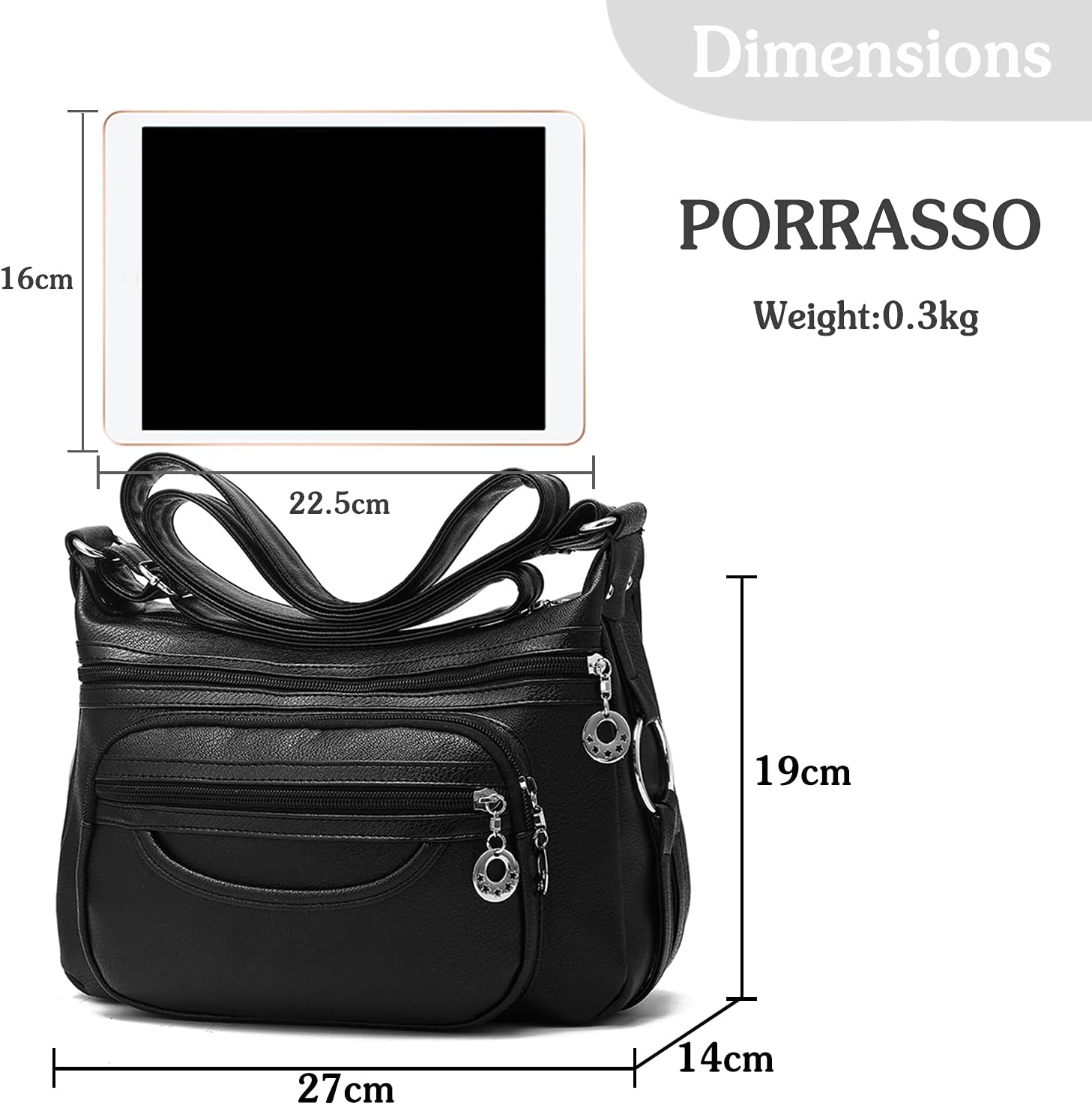 PORRASSO Damen Umhängetasche Multi-Tasche Wasserdicht Schultertasche Messenger Bag PU Handtasche für