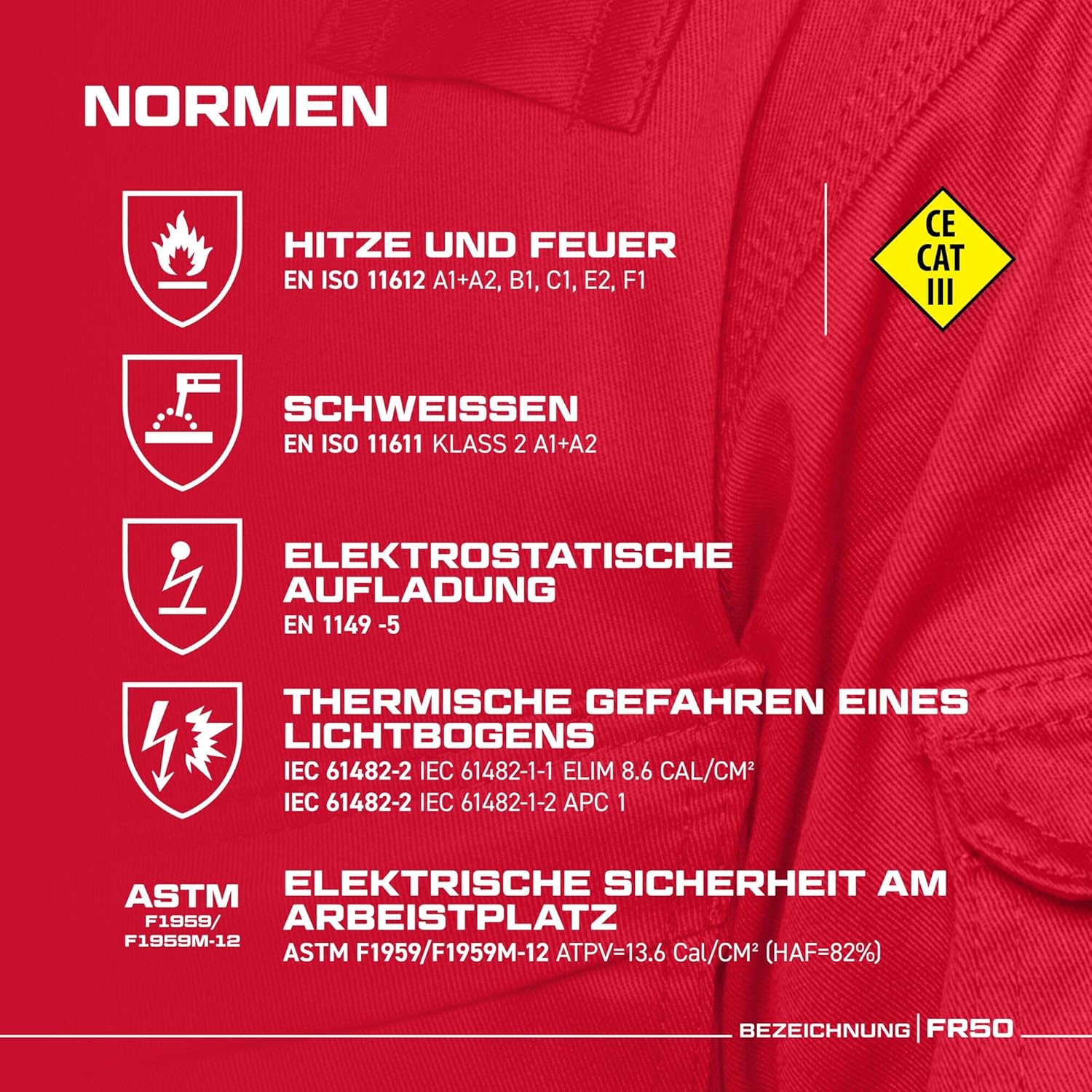 • PRODUKZERTIFIZIERUNG: EN ISO 11612 (A1+A2, B1, C1, E2, F1). EN ISO 11611 Class 2 (A1+A2). EN 1149 -5. IEC 61482-2 IEC 61482-1-1 (ELIM 8.6 CAL/CM²). IEC 61482-2 IEC 61482-1-2 APC 1.