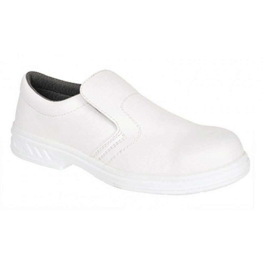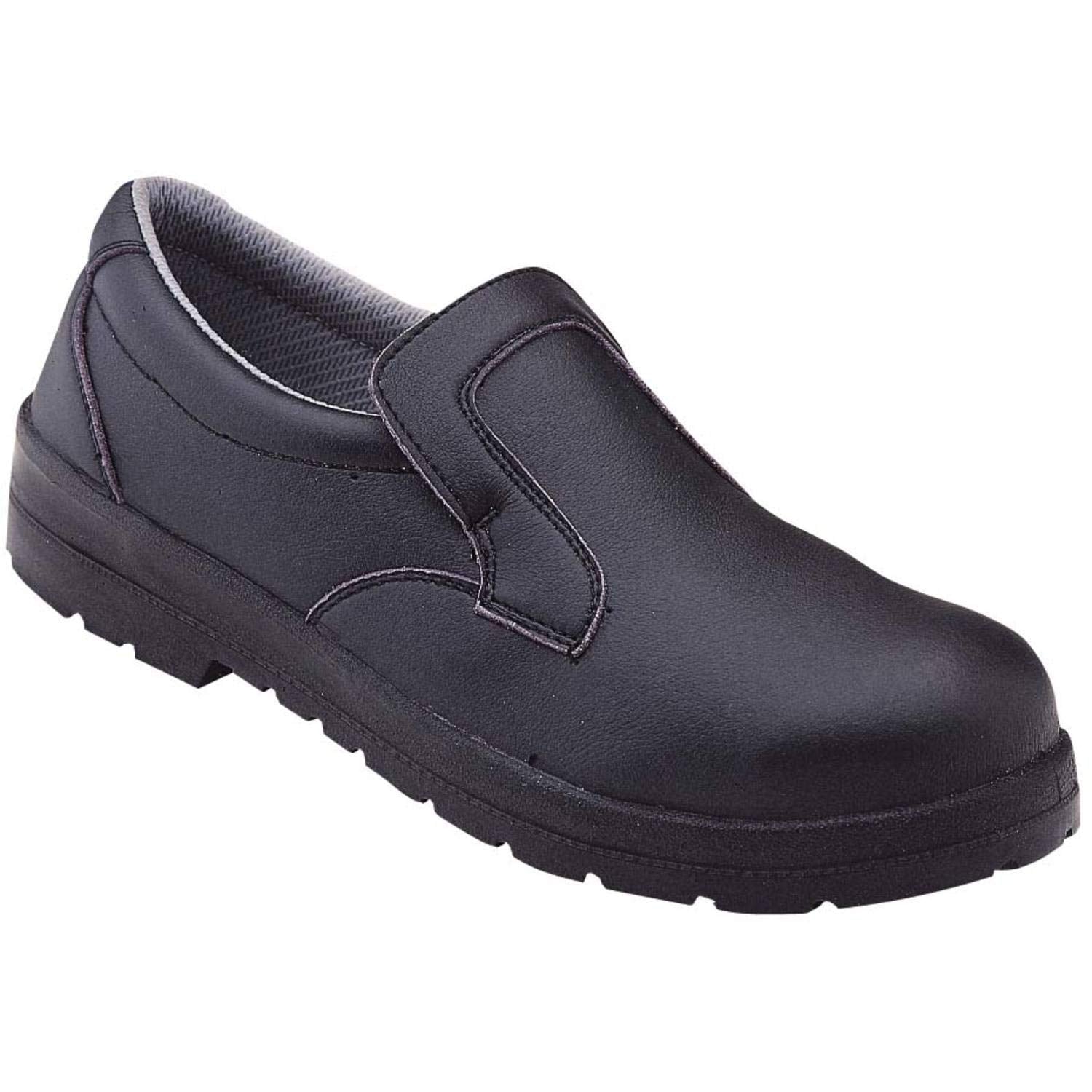 • GESTALTUNG UND FUNKTIONALITÄT: Erstklassiger Slipper für die Lebensmittelindustrie und medizinische Bereiche. Aus robuster Mikrofaser mit Zehenschutzkappe aus Stahl und rutschhemmender Sohle.