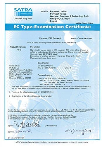 - EN ISO 20471 Class 3 GO/RT 3279 Issue 8
