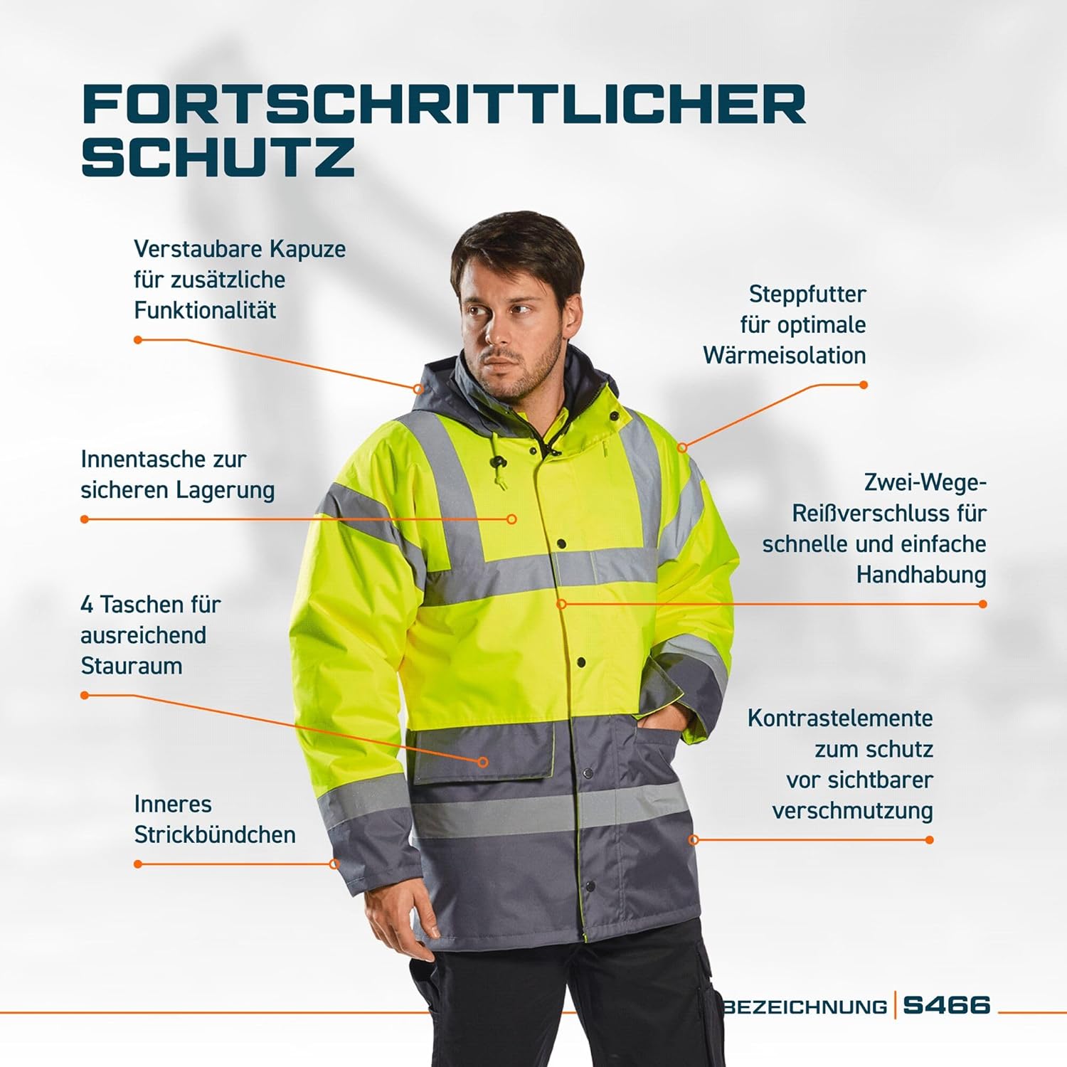 - GESTALTUNG UND FUNKTIONALITÄT: Die Kontrast-Farben machen sie zu einer guten Wahl. Hergestellt, um Sie vor jedem Wetter zu schützen und Sie sichtbar zu machen. Die Jacke ist komplett wasserdicht, hat einen Kordelzug an Kapuze und Saum, Strickbündchen