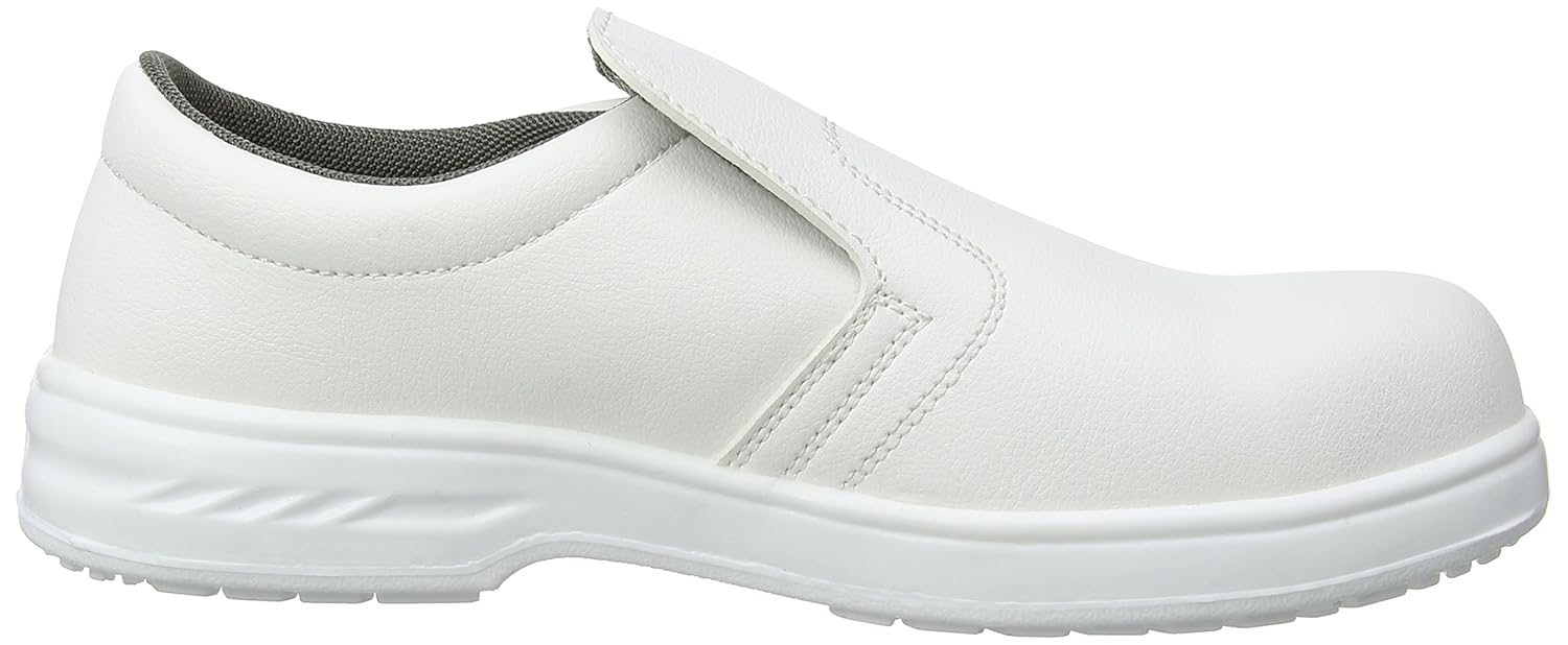 • GESTALTUNG UND FUNKTIONALITÄT: Erstklassiger Slipper für die Lebensmittelindustrie und medizinische Bereiche. Aus robuster Mikrofaser mit Zehenschutzkappe aus Stahl und rutschhemmender Sohle.