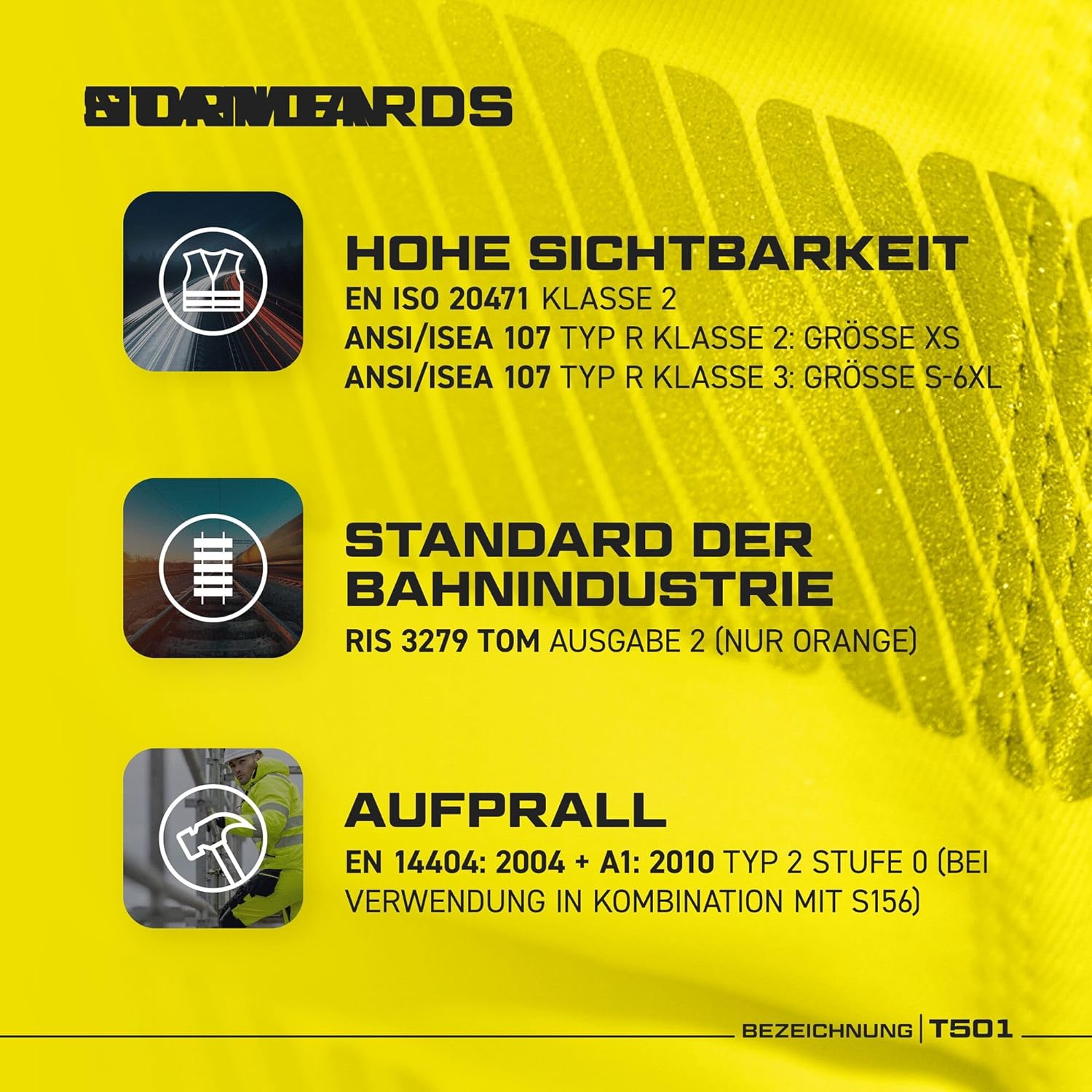 • PRODUKZERTIFIZIERUNG: EN ISO 20471 Class 2. RIS 3279 TOM Issue 1 (Orange Only). EN 14404: 2004 + A1: 2010 Type 2 Level 0 (When used in combination with S156). .
