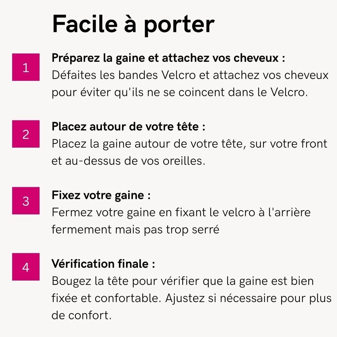 • Das Stirnband kann mithilfe des Klettverschlusses im Nacken angepasst werden
