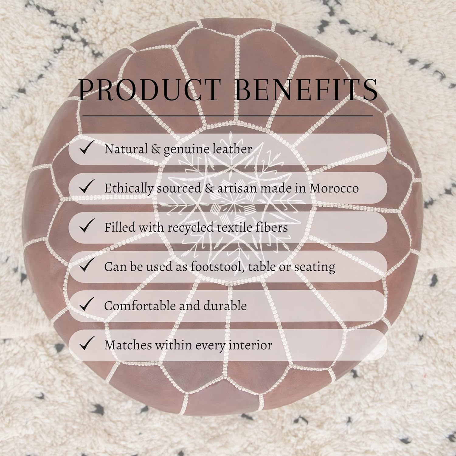 • UMWELTFREUNDLICH: Gut gefüllt und einsatzbereit. Ihr Sitzpouf wird auf nachhaltige Weise mit einer Mischung aus Textilfasern gefüllt, wodurch wir alle zu einer besseren Welt mit weniger Abfall beitragen. Dadurch erhält der marokkanische Ledersessel