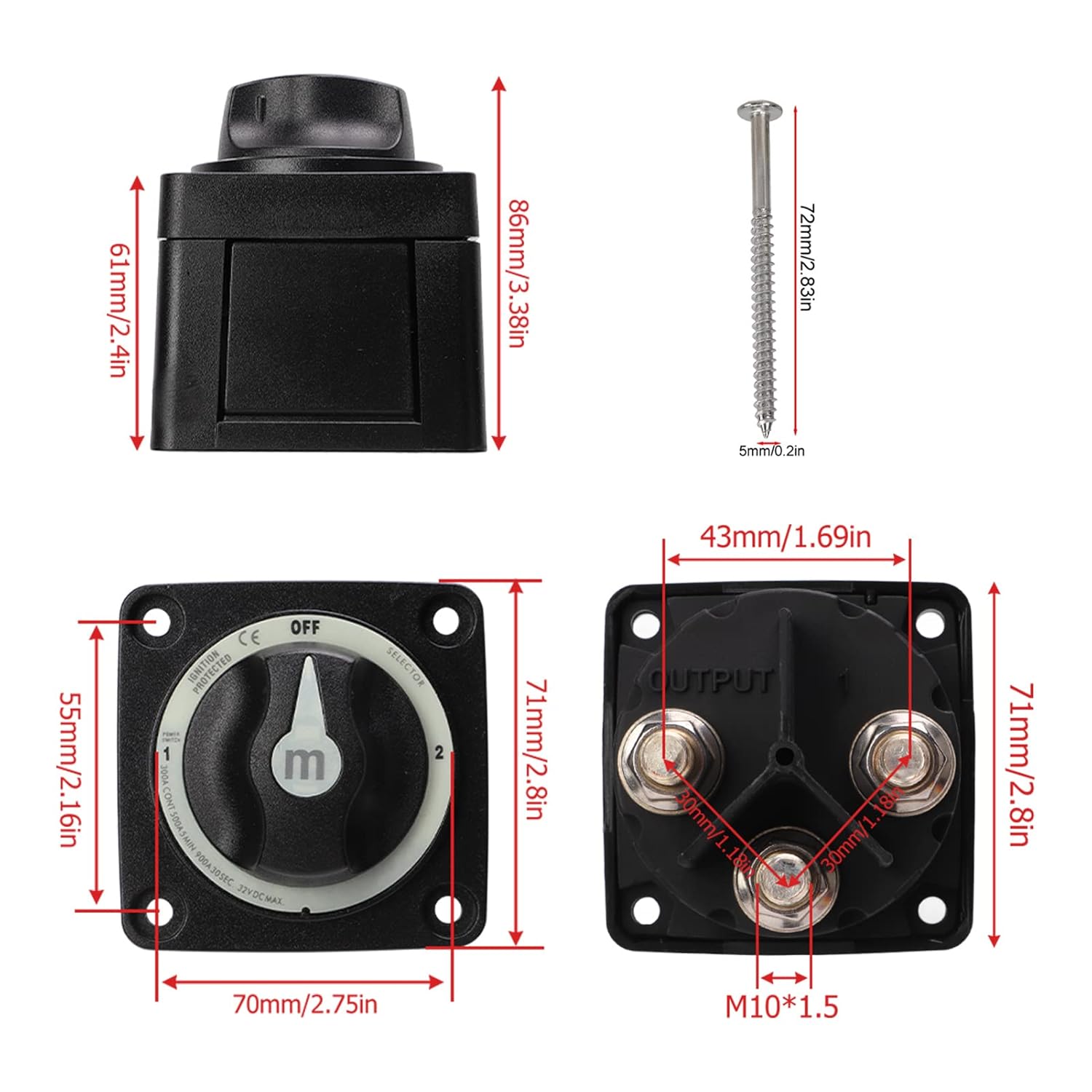 - 【Einfach zu bedienen】 Der Batterietrennschalter ist einfach zu bedienen und einfach zu installieren, es sind keine Änderungen, Schneiden oder Bohren erforderlich, die Installation ist einfach, das Montageloch nimmt 3/8-Zoll-Anschlussklemmen (M10)