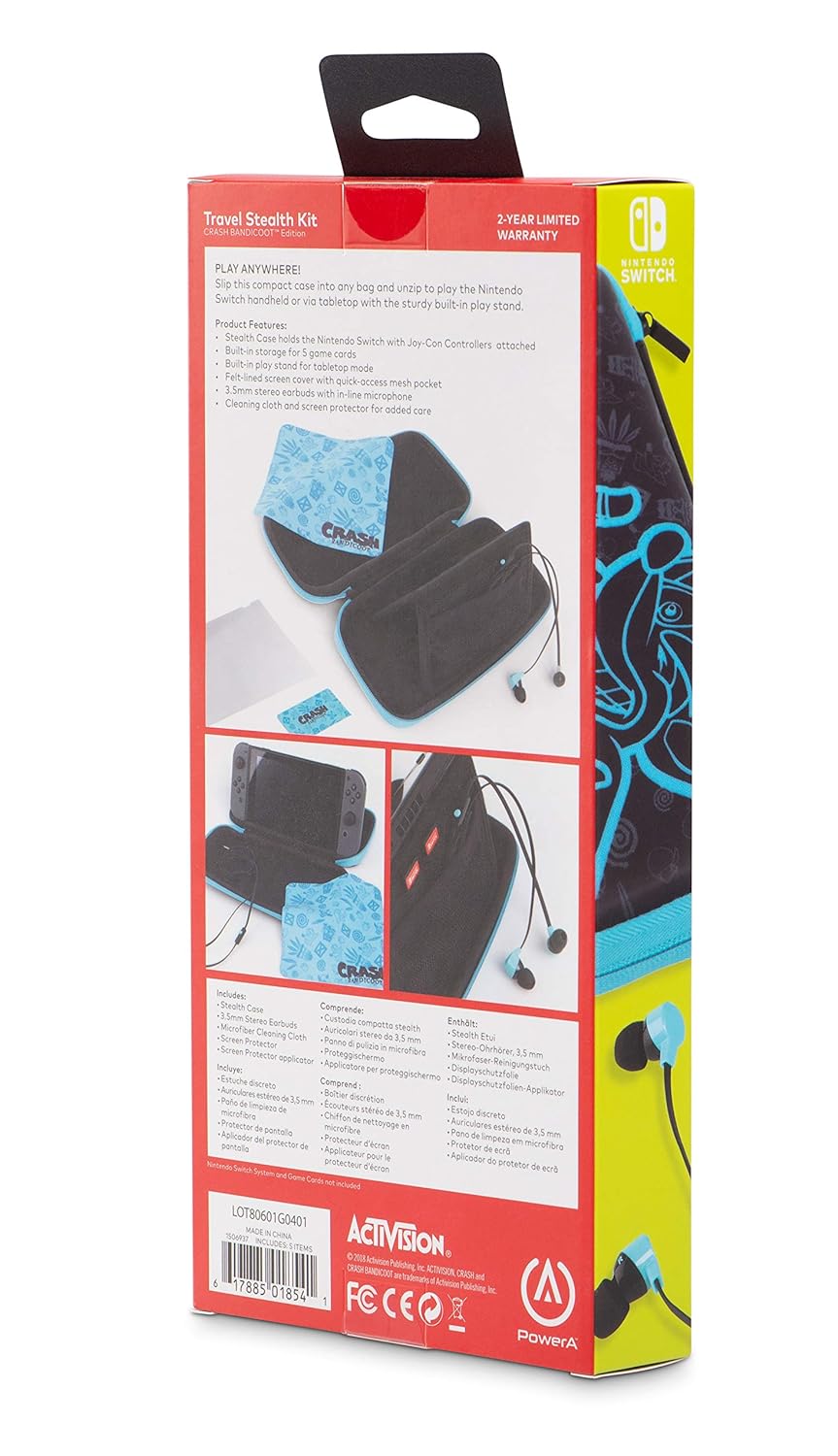 - Internal felt lining with built in play stand for tabletop mode.Storage for 5 game cards plus mesh pocket.Officially licensed for Nintendo Switch.2-year limited warranty - register at PowerA.com