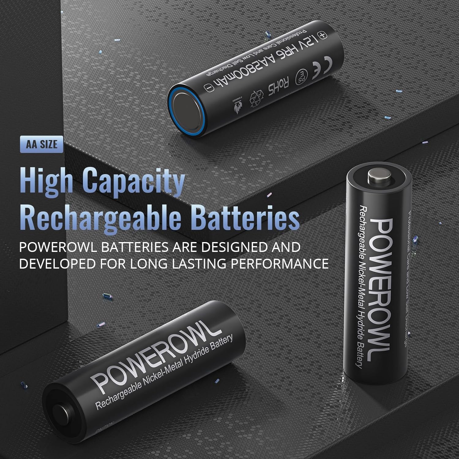 - 16 Stück POWEROWL 1.2V Ni-MH AA Akku mit 2800mAh hoher Kapazität, ideal für die Geräte mit hohem Stromverbrauch