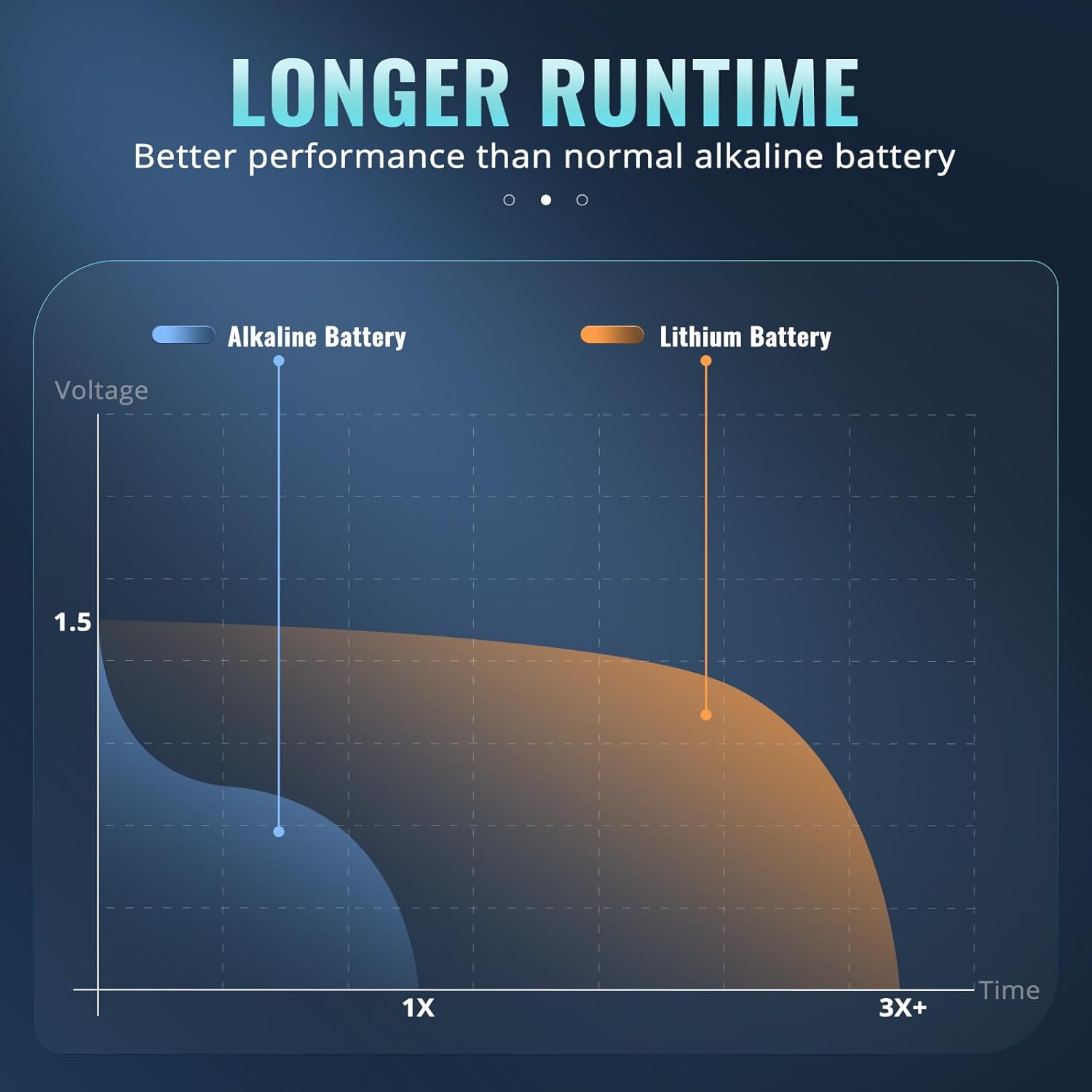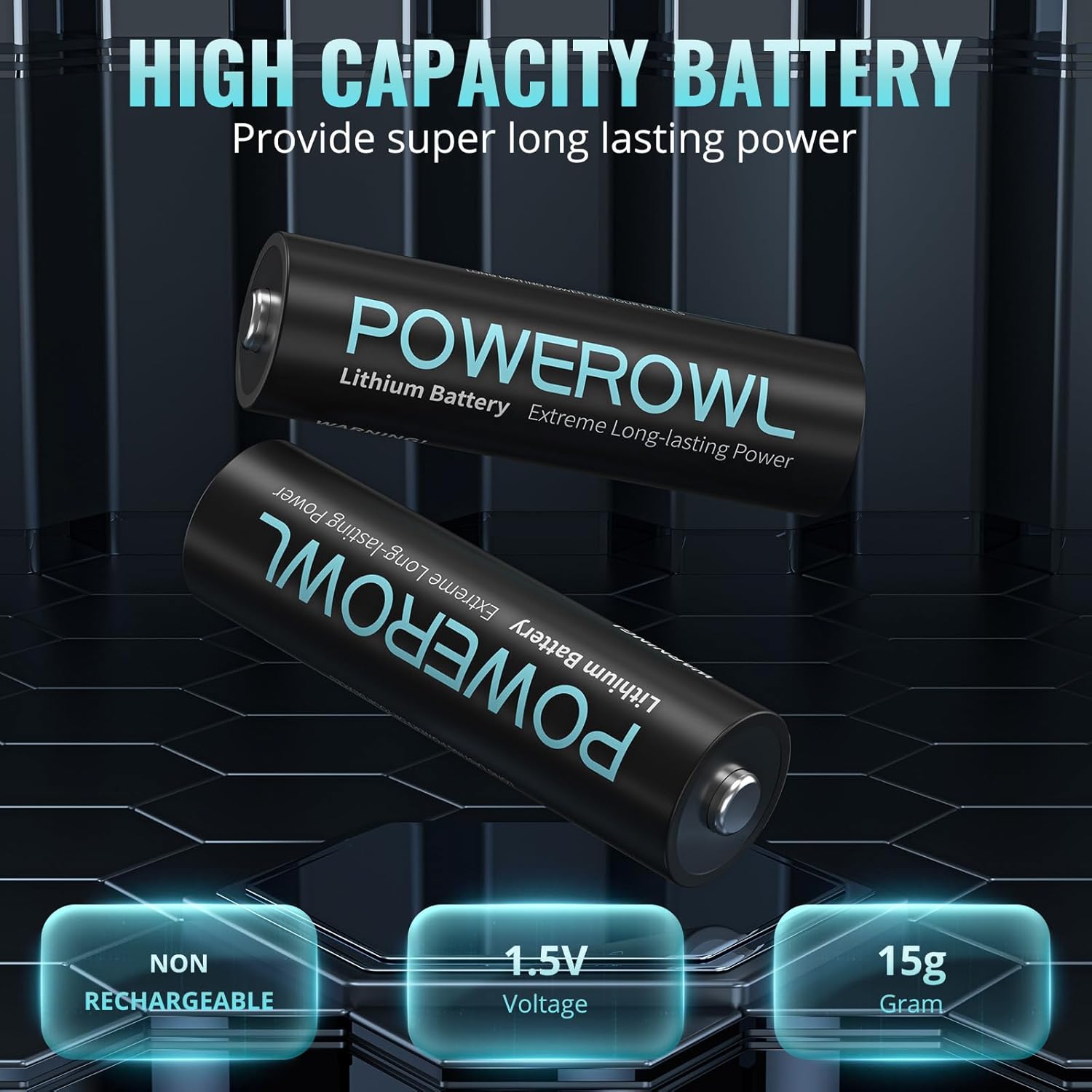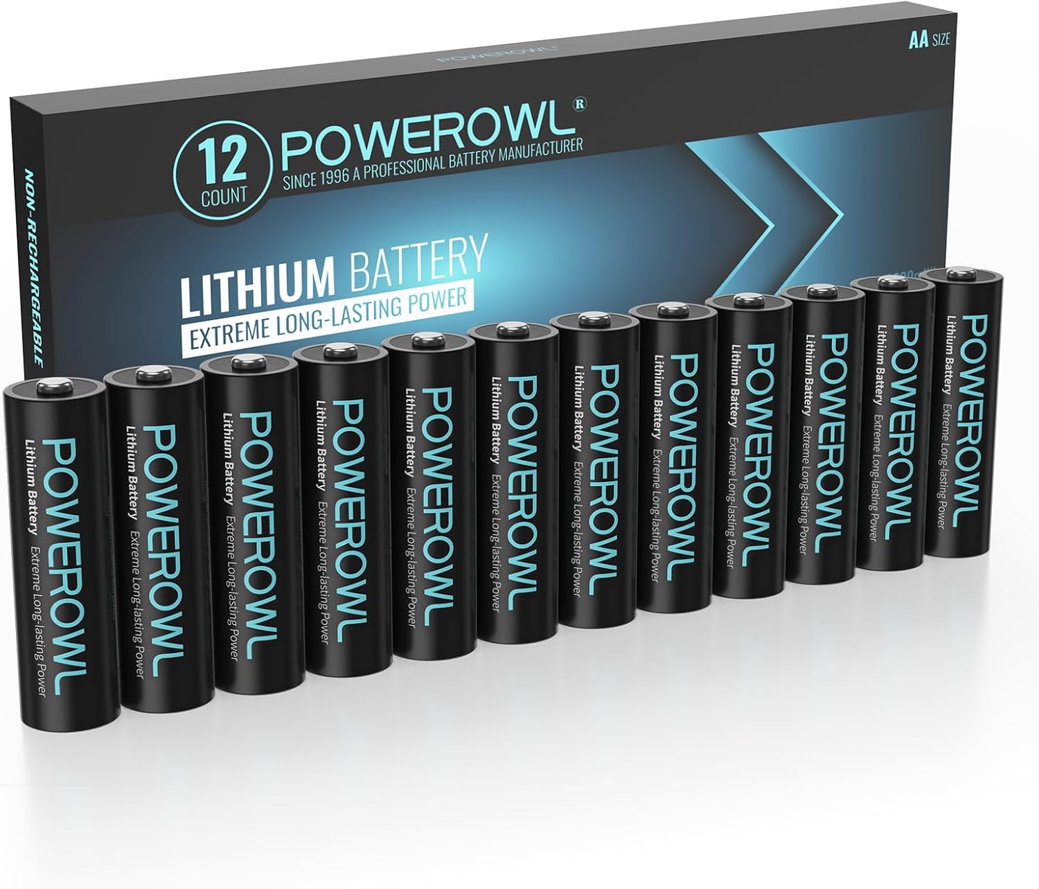 - Hohe Kapazität: 12 Stück nicht wiederaufladbare Powerowl 3000 mAh 1,5 V Lithiumbatterien mit geringem Gewicht (15 g/1 Stück) und langer Lebensdauer (10 Jahre).