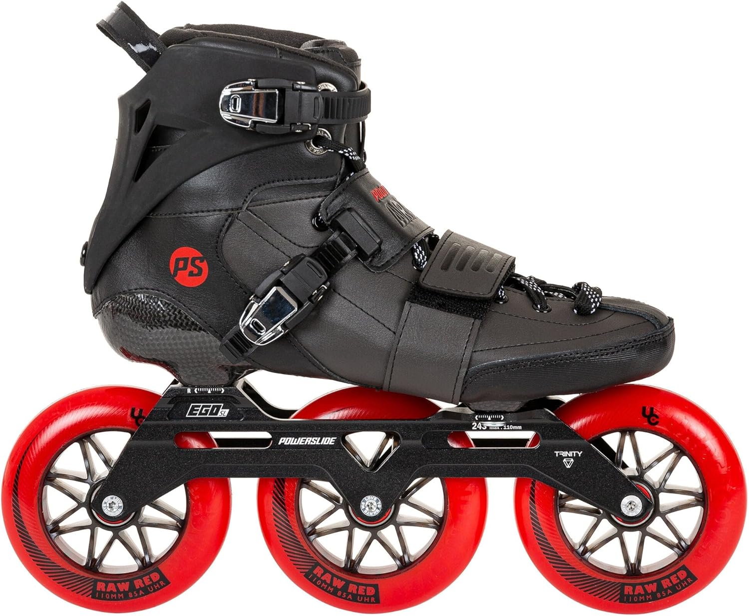 - High end carbon inline skate with medium cut boot for speed slalom and urban skating
