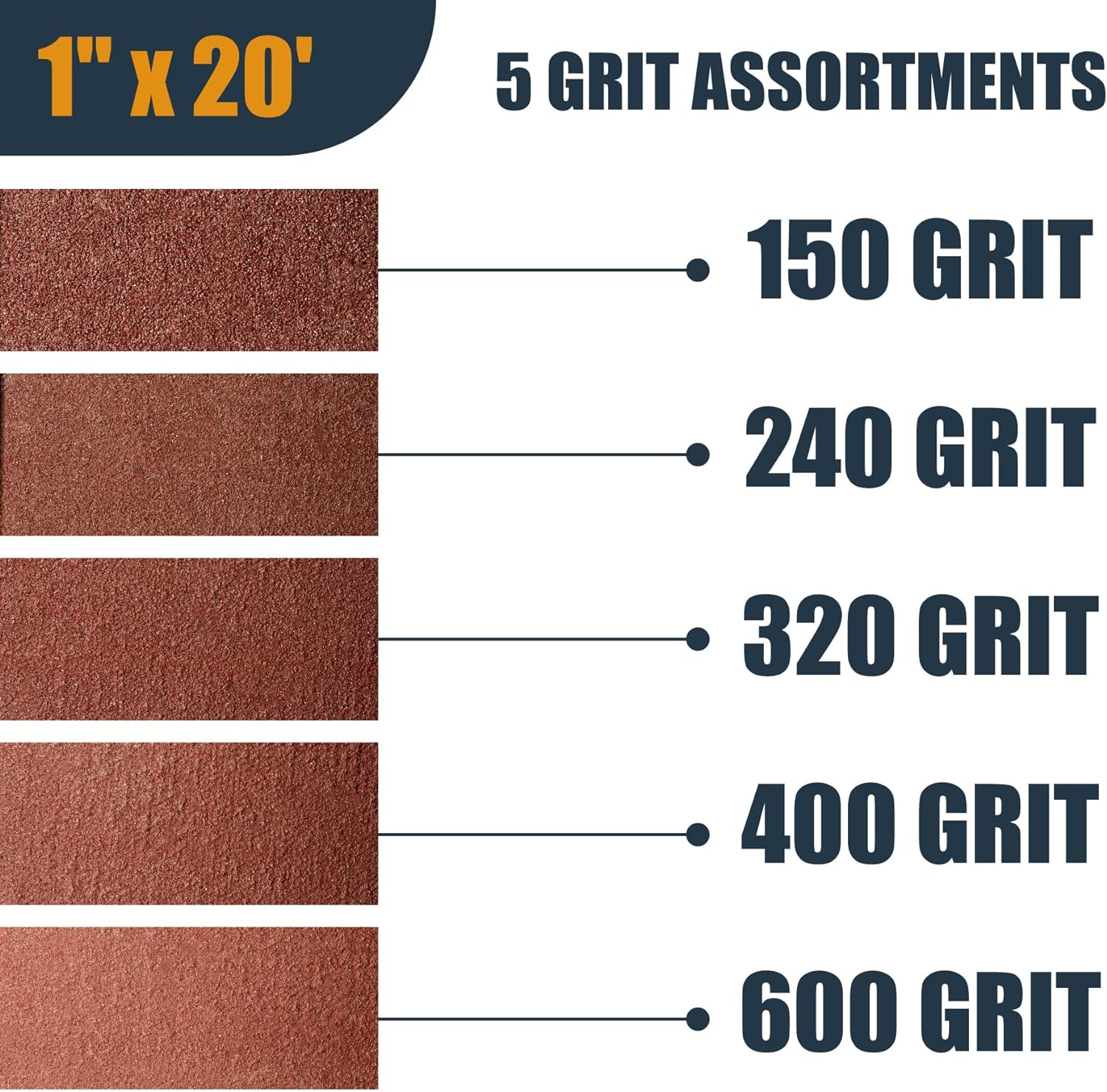 - Enthält: 5 Rollen starkes, schnell schneidendes Aluminiumoxid-Schleifpapier (2,5 cm breit und 6 m lang) in fünf der folgenden beliebten Körnungen: 150, 240, 320, 400, 600. Sie müssen Ihren Workflow nicht unterbrechen, um in den Laden zu gehen, da Sie