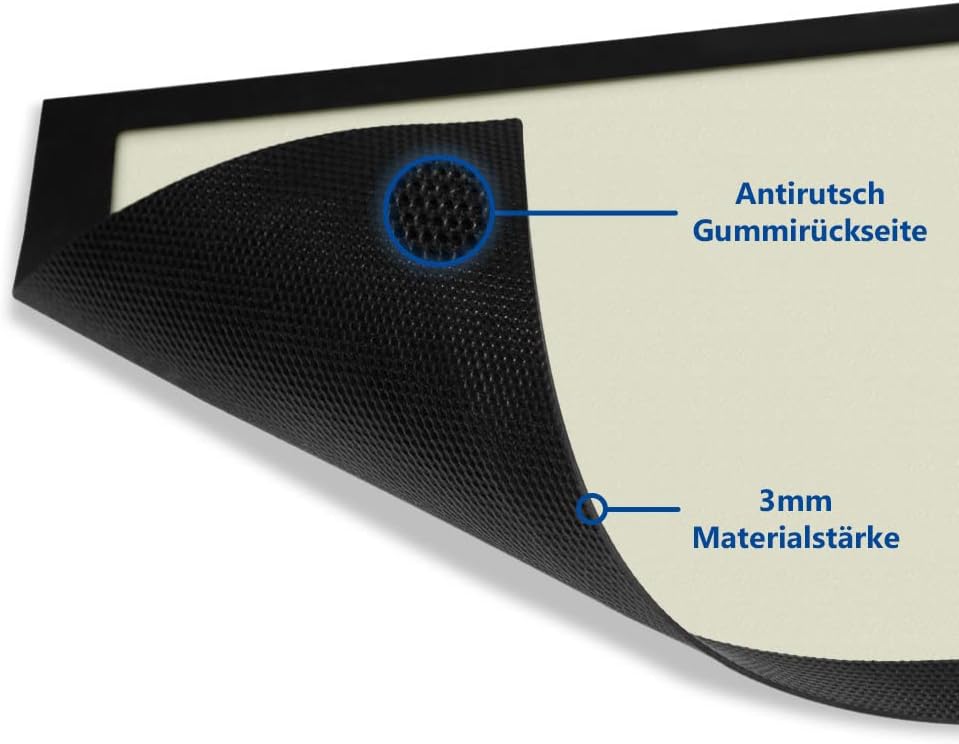 - Durch die gummierte, schwarze Rückseite ist die Schmutzfangmatte besonders rutschfest - egal ob innen oder aussen. Damit Sie besonders lange Freude an Ihrer persönlichen Fussmatte haben, empfehlen wir die oberflächliche Reinigung per Hand - den