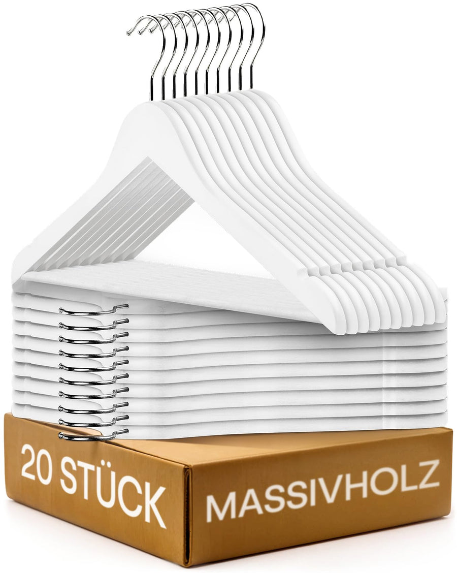 - 👕 ROBUST & STABIL: Unsere Kleiderbügel aus weissem Holz sind stabil genug, um bis zu 5 kg zu tragen - ideal für schwere Kleidungsstücke wie Jacken, Kleider oder Anzüge.