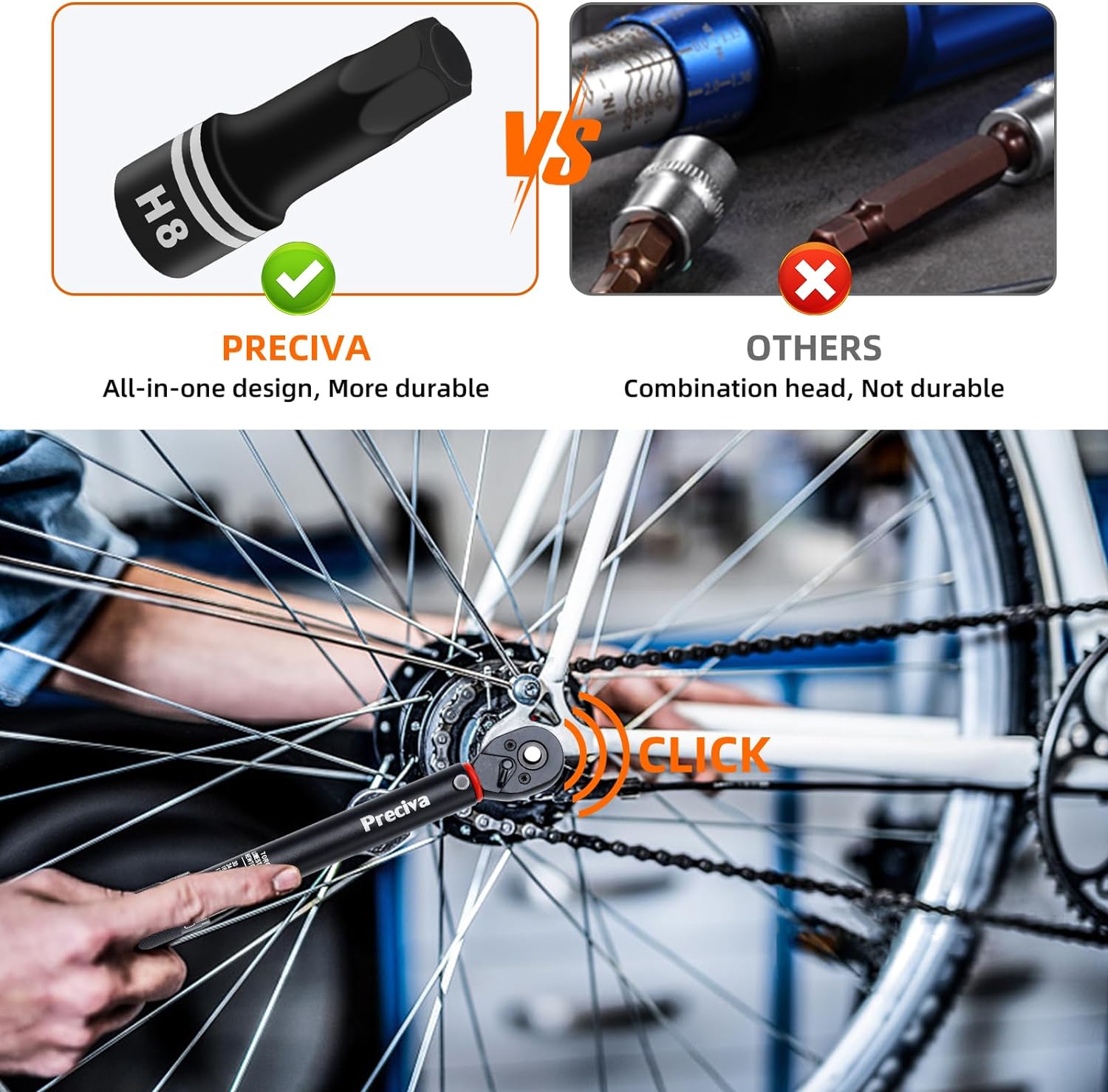 - Wenn der voreingestellte Drehmomentwert erreicht ist, gibt der Schlüssel ein "Klick"-Geräusch aus, das "gehört und gefühlt" werden kann, um Sie daran zu erinnern, dass Sie die Krafteinwirkung "stoppen" müssen. Wichtiger Hinweis: Bei ca. 3-5 Nm kann