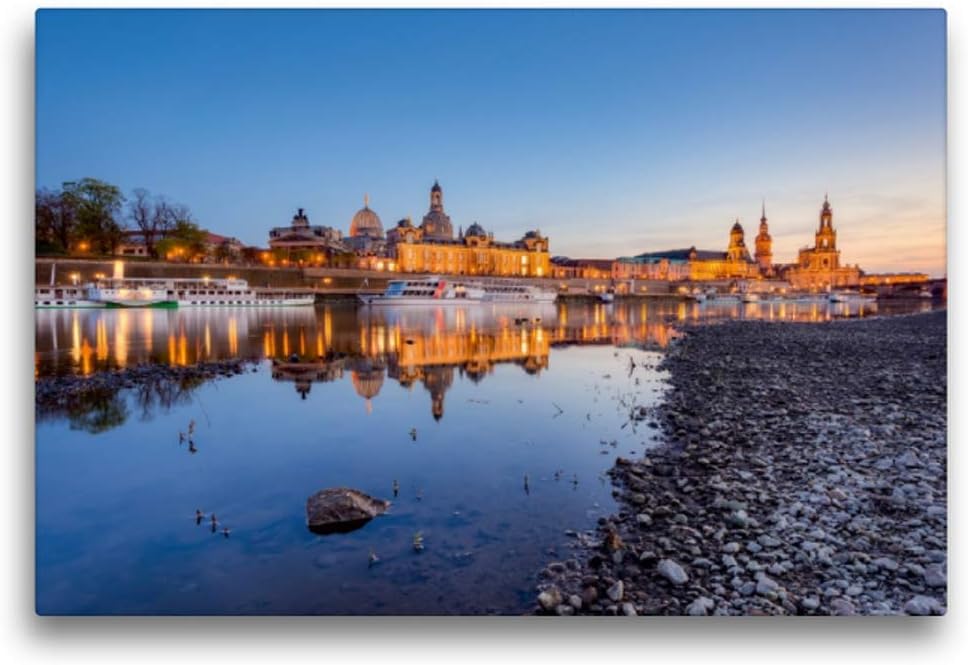 Premium Textil-Leinwand 45 x 30 cm Quer-Format Am Elbufer in Dresden | Wandbild, HD-Bild auf Keilrah