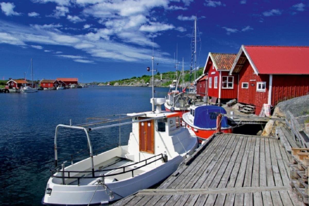 Premium Textil-Leinwand 45 x 30 cm Quer-Format Schweden: Kleiner Hafen an der Westküste | Wandbild,