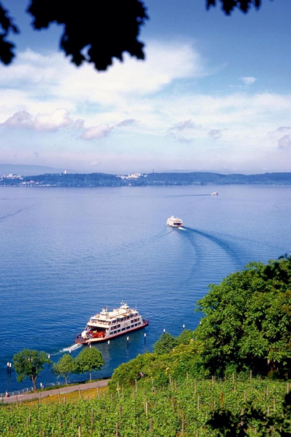 Premium Textil-Leinwand 50 x 75 cm Hoch-Format Fährschiffe von Meersburg nach Konstanz | Wandbild, H