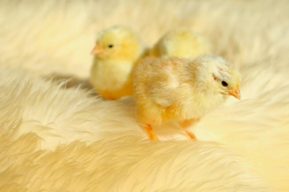 Premium Textil-Leinwand 75 x 50 cm Quer-Format Drei niedliche Küken | Wandbild, HD-Bild auf Keilrahm