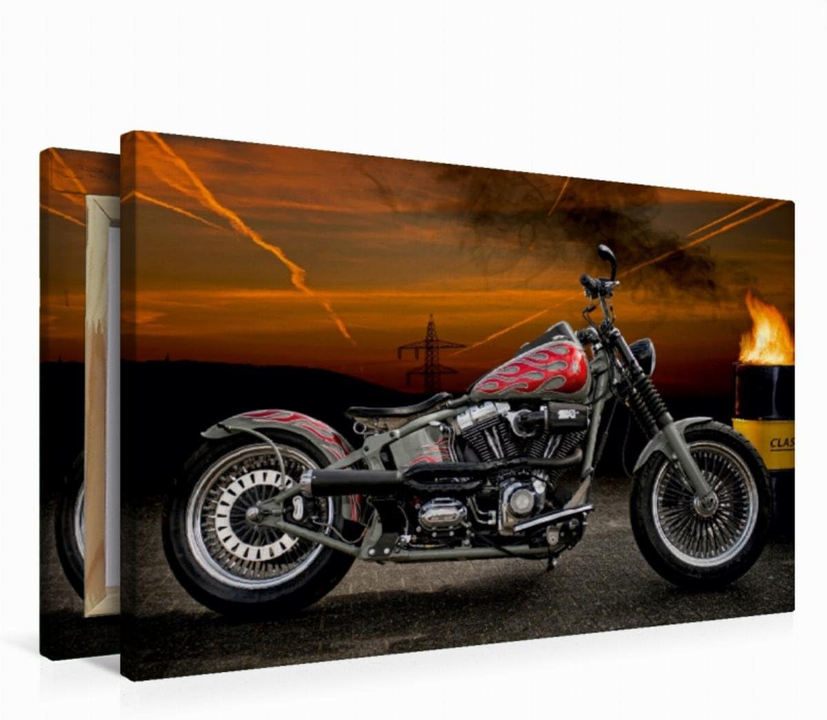 Premium Textil-Leinwand 75 x 50 cm Quer-Format Harley-Davidson Fat Boy Softail Bobber | Wandbild, HD