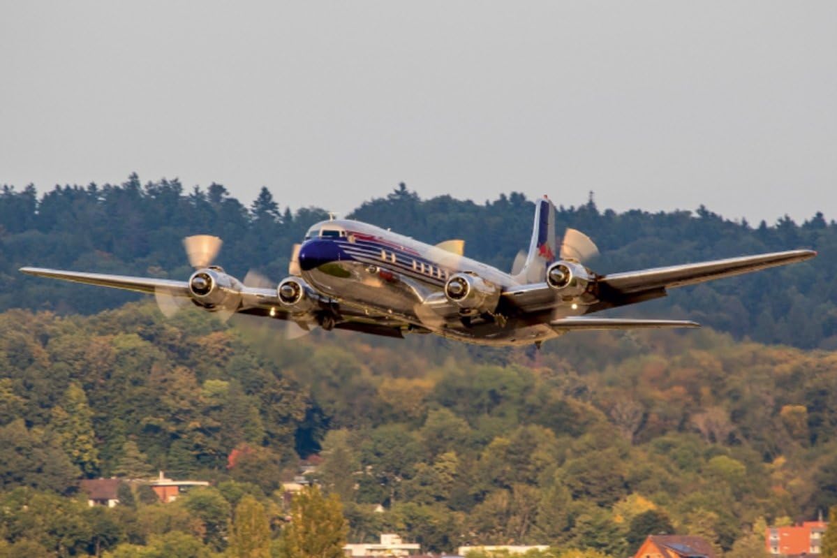 Premium Textil-Leinwand 75 x 50 cm Quer-Format Red Bull Douglas DC-6 Zürich, Switzerland | Wandbild,