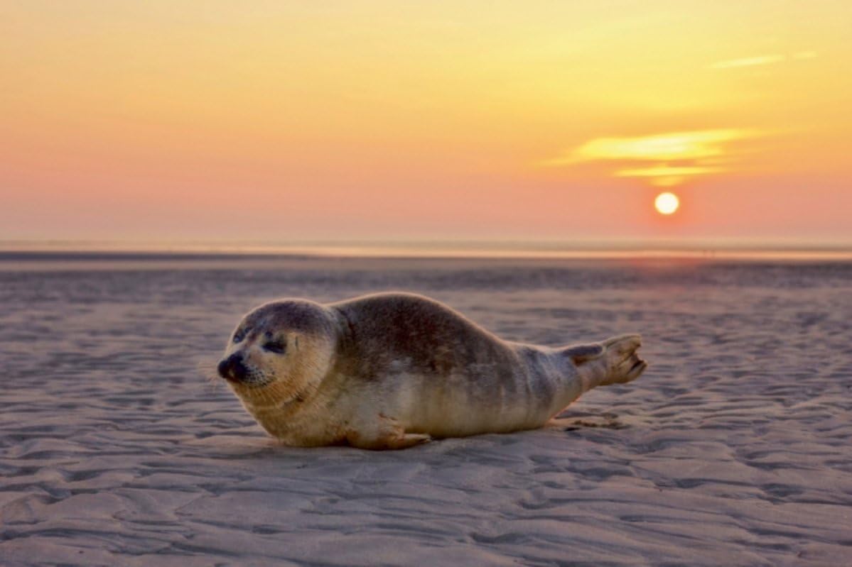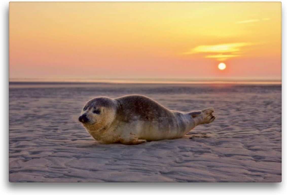 Premium Textil-Leinwand 75 x 50 cm Quer-Format Robbe am Strand von St. Peter-Ording | Wandbild, HD-B