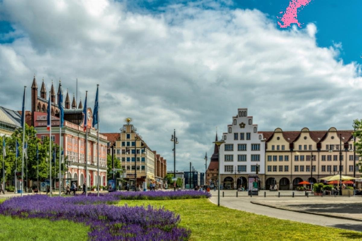 Premium Textil-Leinwand 75 x 50 cm Quer-Format Rostock Innenstadt | Wandbild, HD-Bild auf Keilrahmen