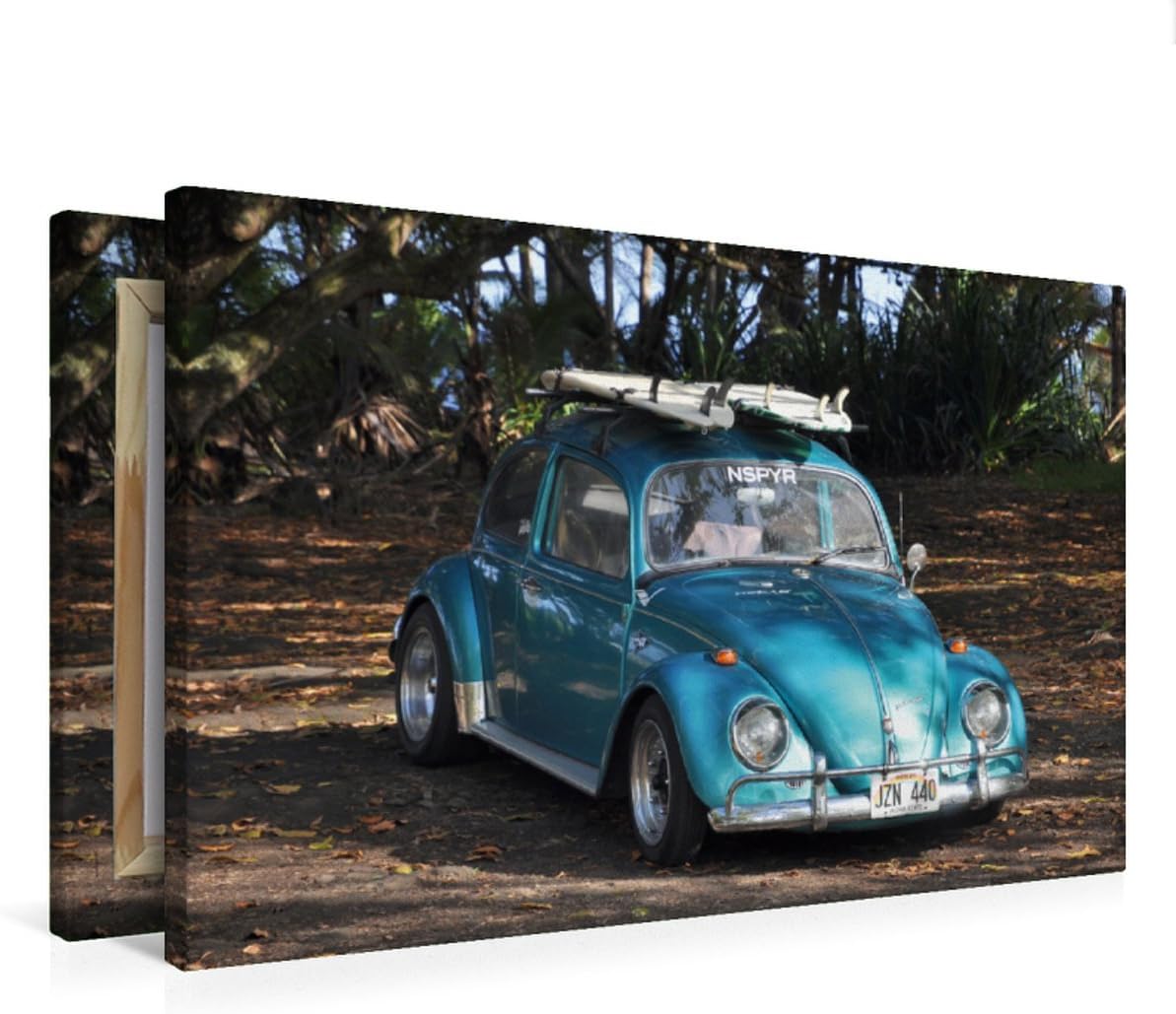 Premium Textil-Leinwand 75 x 50 cm Quer-Format VW Käfer, Hawaii | Wandbild, HD-Bild auf Keilrahmen,