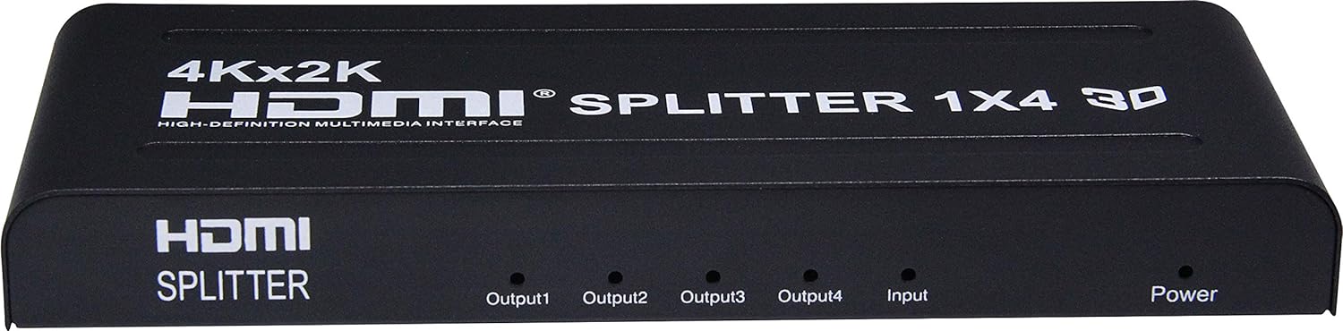 - HDMI Video Splitter 1 => 4 Ports mit externem Netzteil, HDMI 1.4a kompatibel, Max. Auflösung 4K, Full HD 1080p und 1080i