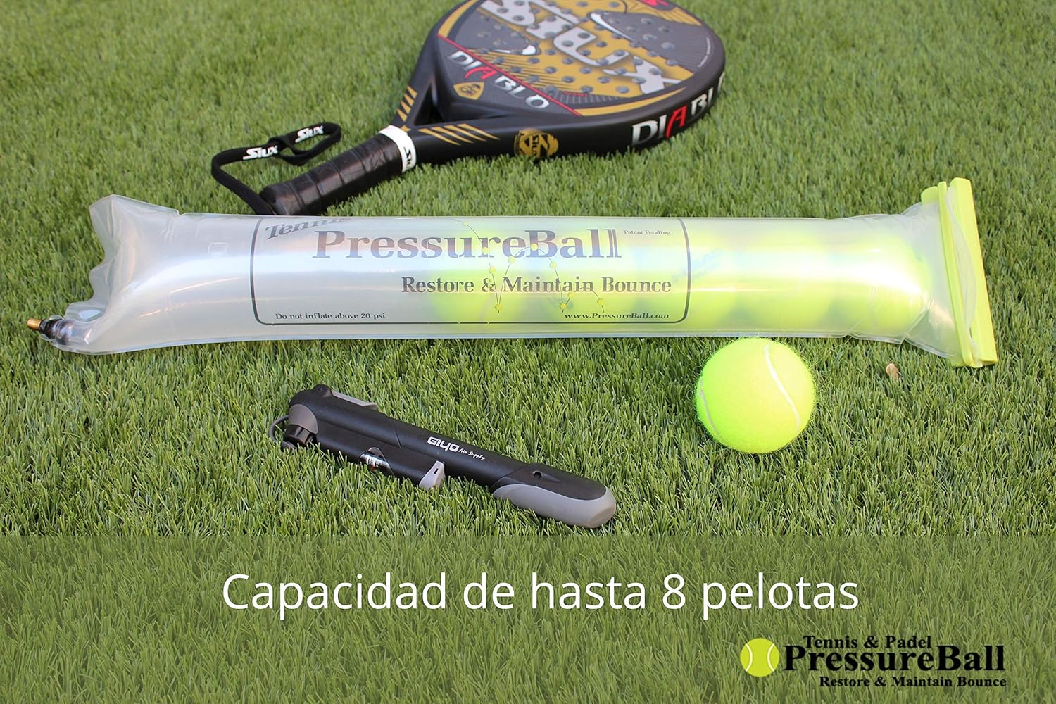 - PressureBall ist ein hochwertiger und einfacher zu verwendender Kompressor auf dem Markt, der für Padel- und Tennisbälle ihren ursprünglichen Druck wiederherstellt. Legen Sie einfach die Bälle ein, legen Sie die Klemme, dann pumpen Sie die Pumpe bis