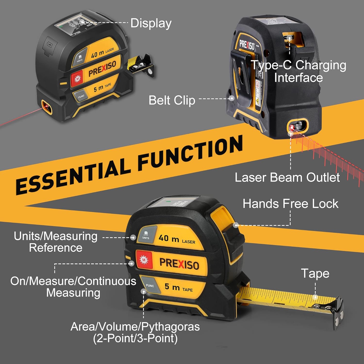 - 2 IN 1 LASER MESSGERÄT - Kombiniert mit 40m Laser Entfernungsmesser und 5m Massband. Sie könnten den Messmodus je nach Länge und Raum frei wählen. Ideal für Zuhause, Bau und Industrie, insbesondere in grossen Bereichen wie Zimmern, Wohnungen,